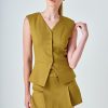 Endless Rose Women’s Jacqueline Sleeveless Buttoned Tweed Top | White