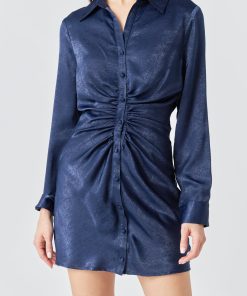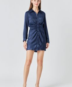 Endless Rose Women’s Dresses Satin Front Cinched Mini Dress | Navy