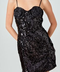Endless Rose Women’s Dresses Sequin Flower Mini Dress | Black