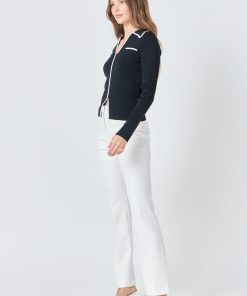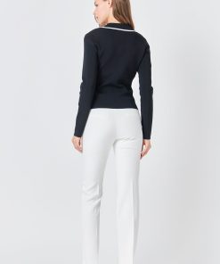 Elevate your wardrobe with our Binded Collared Top. Crafted with a luxurious knit fabric, this top is perfect for both casual and formal occasions. The collared neckline adds a touch of sophistication, while the binding detail creates a tailored look. With long sleeves, this top is suitable for year round wear. Perfect for layering or dressing up on its own, this top is a must-have for any fashion-forward individual. Don’t miss out on this versatile and trendy piece. Shop now and add it to your collection of stylish tops!