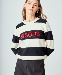 Introducing our Bisous Striped Sweater – the perfect addition to your knit collection! This must-have sweater boasts a classic knit design with long sleeves to keep you cozy all day long. The round neckline adds a touch of elegance and the ribbing detail gives it a fashionable edge. Crafted with a high-quality fabric, this sweater is perfect for any occasion and can be dressed up or down. The stylish striped pattern adds a pop of color and effortlessly elevates any outfit. This sweater is a must-have for any fashion-forward individual.