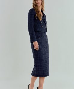 Make a unique fashion statement with this Boucle Tweed Double Breast Jacket. Crafted with comfortable tweed fabric it features a slightly cropped regular fit for a trendy everyday look. A sturdy structured design ensures the jacket will stand out and help you make a lasting impression. Perfect for those looking for a fashion-forward top layer to make a statement.