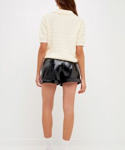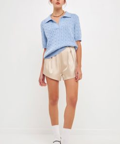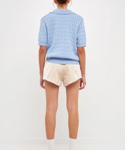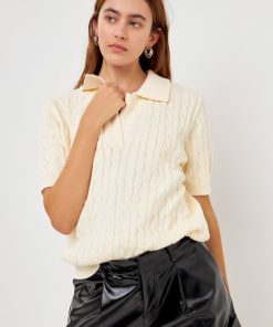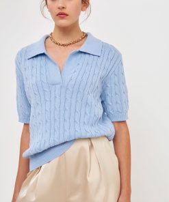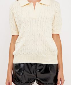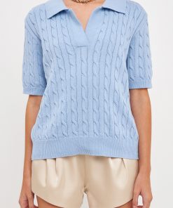 Endless Rose Women’s Cable Knit Polo Top | Cream|blue