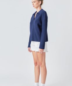Introducing our must-have Collar V neck Knit Top. This versatile top is made from high quality, knit material that is designed to keep you comfortable and stylish. The classic collar and V neckline bring a touch of sophistication, while the long sleeves feature a convenient roll-up design for a more casual look. Whether you’re heading to the office or out for a casual day, this top effortlessly combines style and comfort. Perfect for the upcoming season, this top is a must-have addition to your wardrobe. Shop now and elevate your style with our Collar V neck Knit Top.