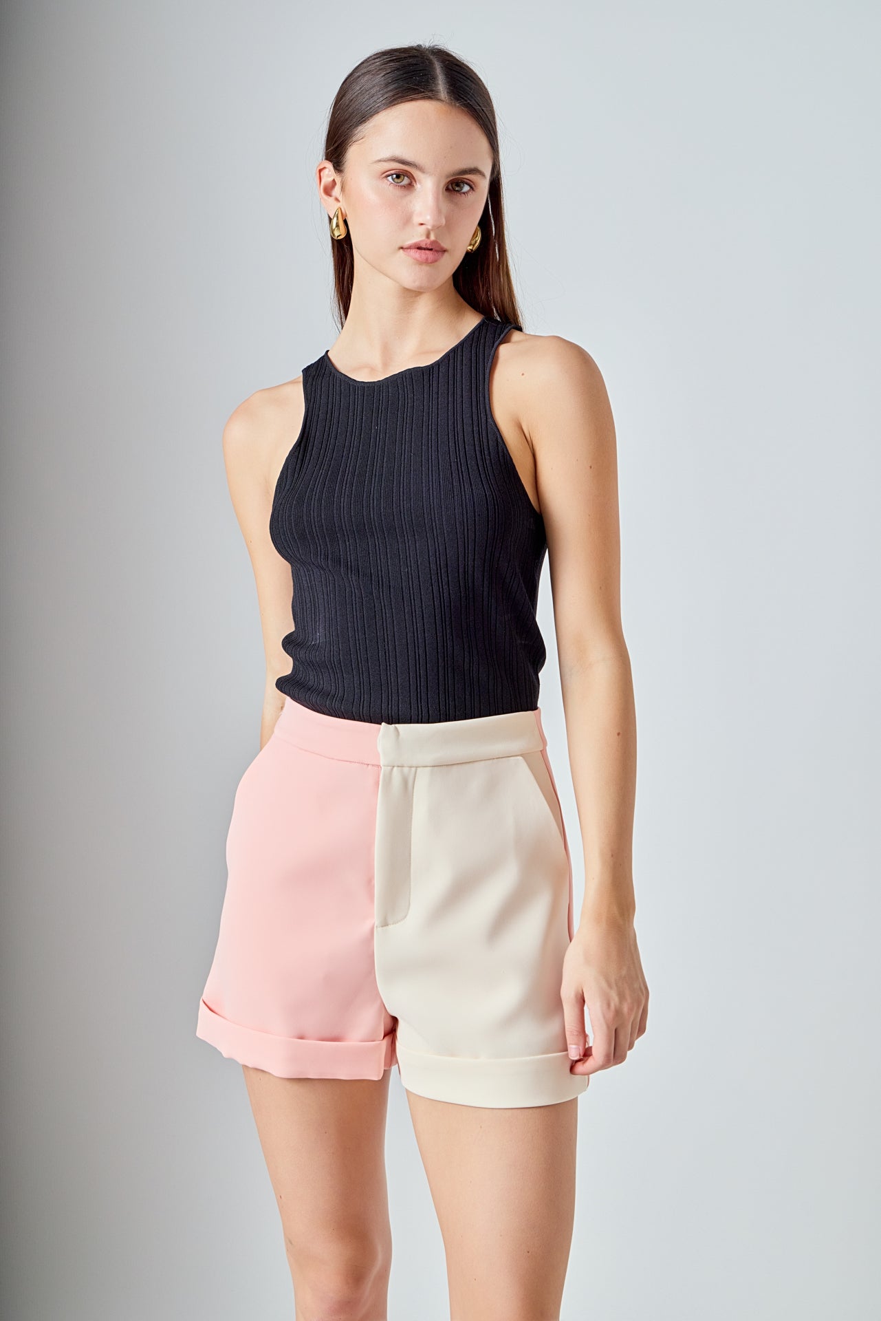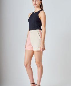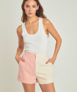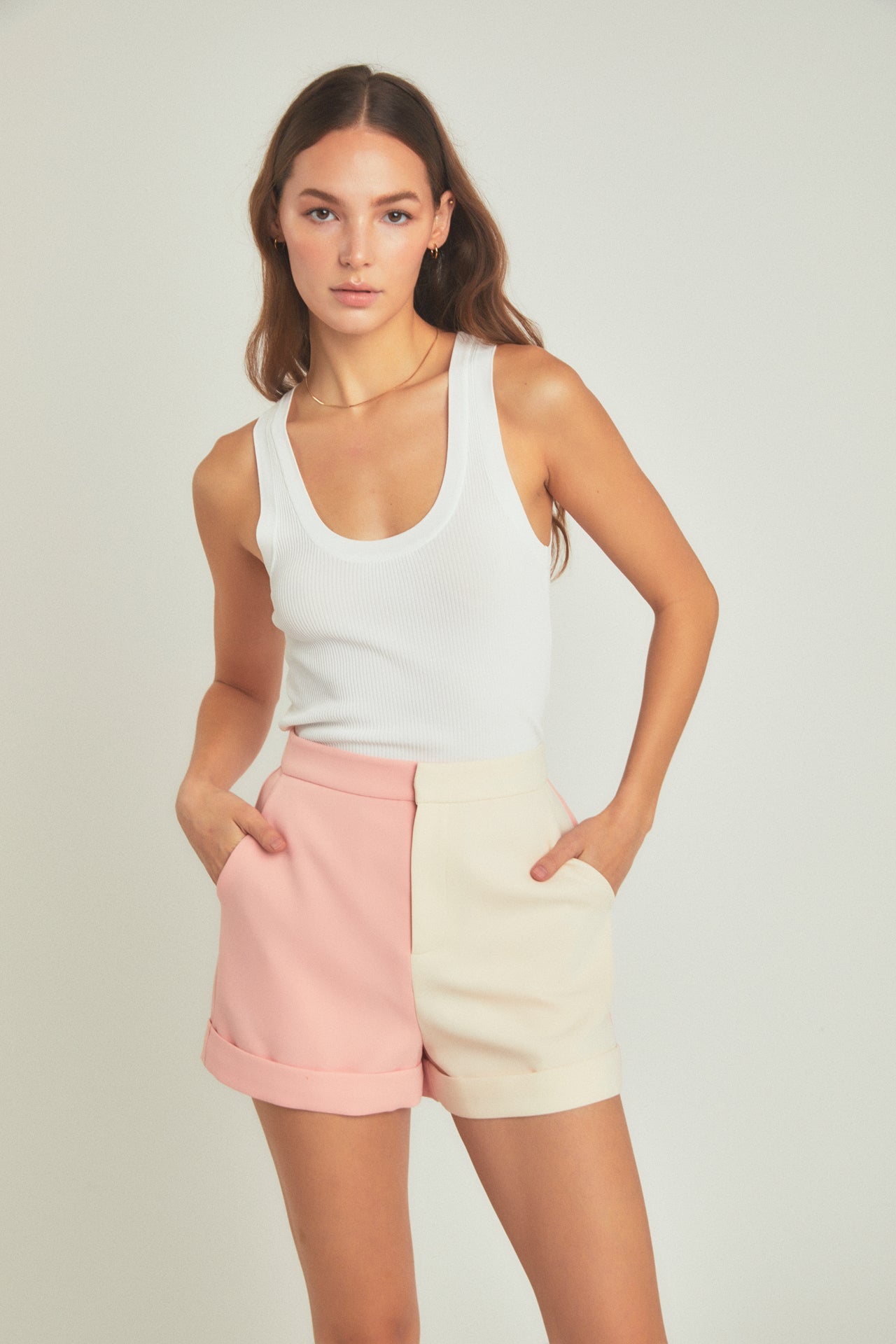 These stylish Colorblock Shorts are essential for any summer wardrobe. Crafted from durable fabric with side pockets and a folded hem they ensure a comfortable fit. Show off your unique style with the vibrant colorblocking design.