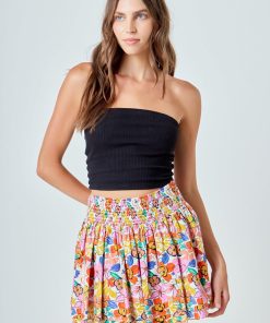 Looking for chic spring summer style? Look no further. This mini length skort is perfect for making a statement. The smocking waistband and tiered skirt detailing are a combination of comfortable and cute while the floral print adds a feminine touch. Get ready to flaunt your style all season in this cotton floral print mini skort.