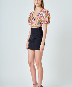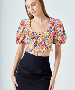 Flaunt your style with this luxurious cotton floral print puff sleeve top. This fitted bodice crop length top features puff blouson short sleeves and a scooped neckline making it comfortable for any occasion. A bow detail at the front adds a touch of femininity to the look. Get ready to take on your day with ease and grace in this stunningly designed top.