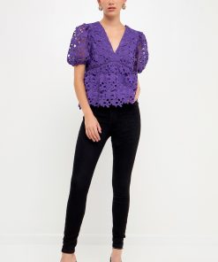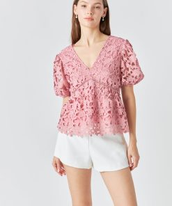 Darling, this top is a must-have for your next cocktail party! With pretty crochet lace and short puff sleeves, this top is perfect for showing some skin. The front and back v-neckline is ultra-flattering, while the lace trim adds a touch of elegance. The center back zipper makes it easy to get in and out of this beauty, while the lined bodice ensures you feel confident all night long.