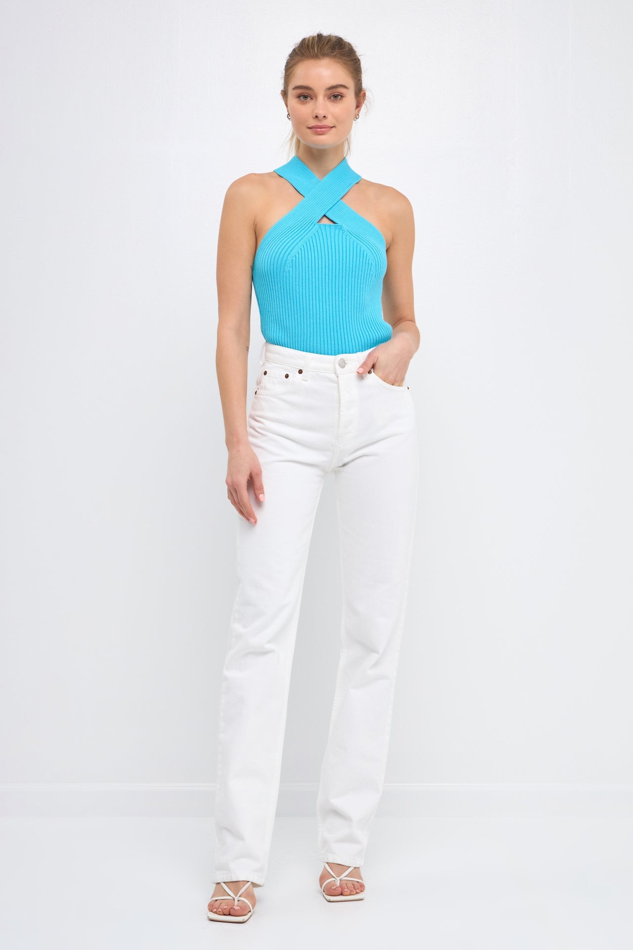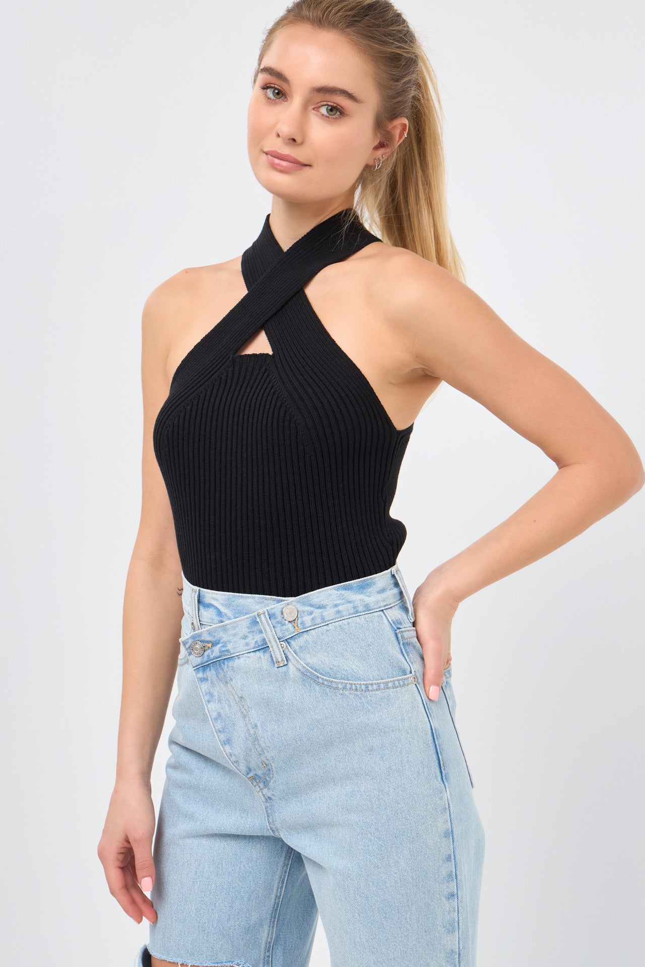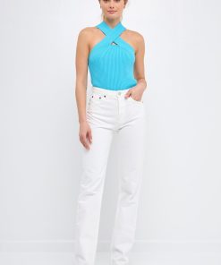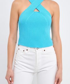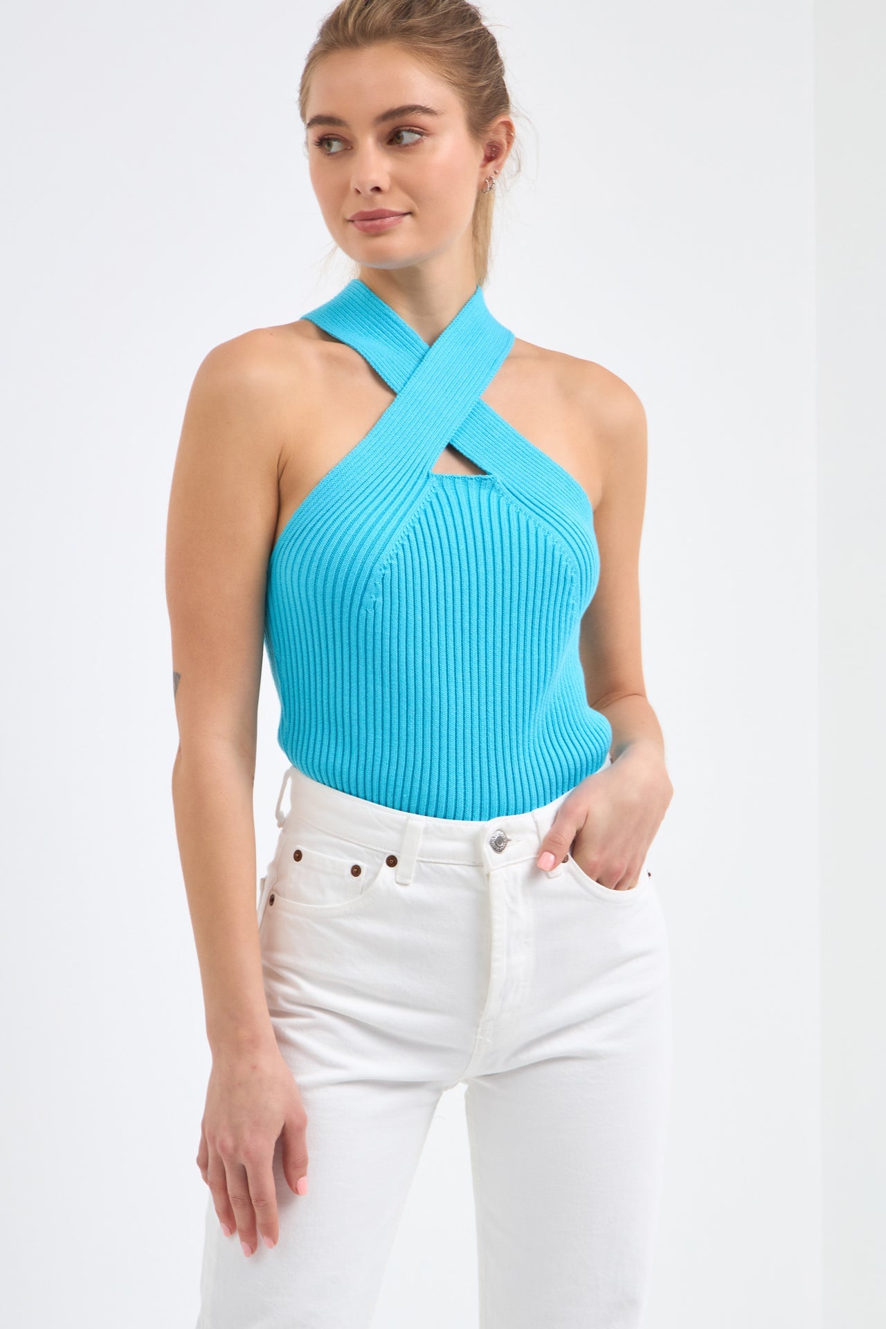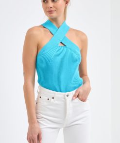 A must-have for all your warm weather style needs. This tank is a key piece for creating endless summer style possibilities. The crossover halter neckline adds a touch of elegance, while the rib knit fabric keeps you comfortable all day long. Whether you’re dressing it up or down, this tank is perfect for any summer occasion.