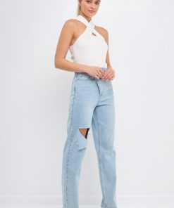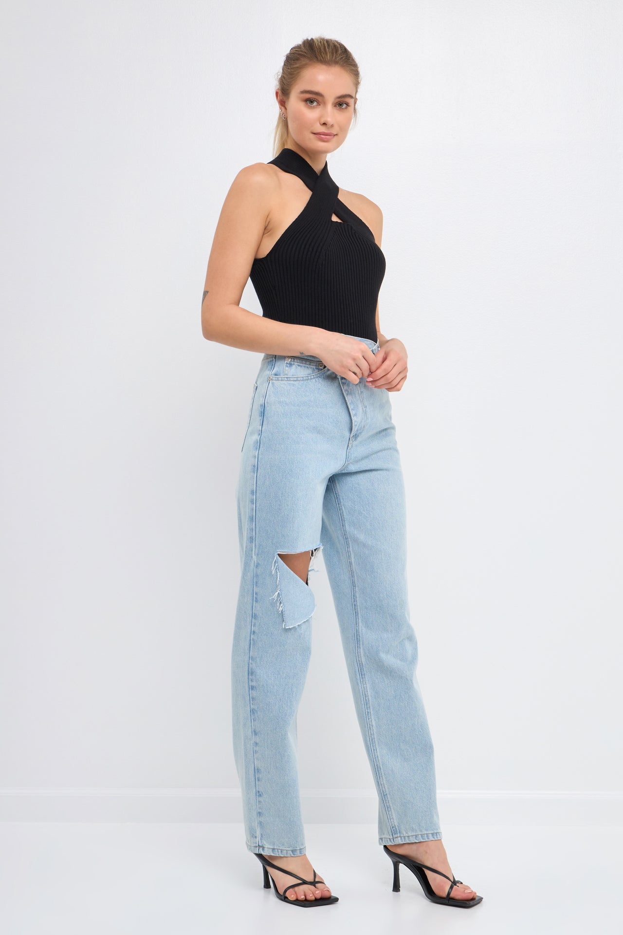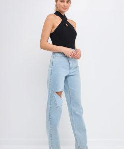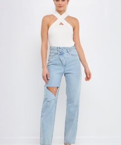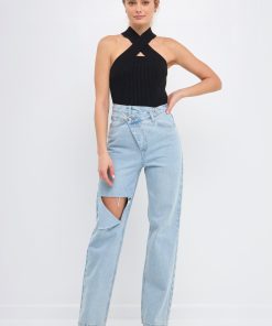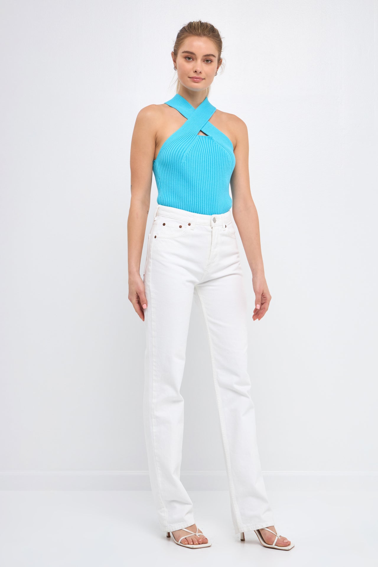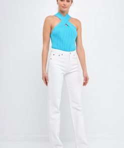 A must-have for all your warm weather style needs. This tank is a key piece for creating endless summer style possibilities. The crossover halter neckline adds a touch of elegance, while the rib knit fabric keeps you comfortable all day long. Whether you’re dressing it up or down, this tank is perfect for any summer occasion.