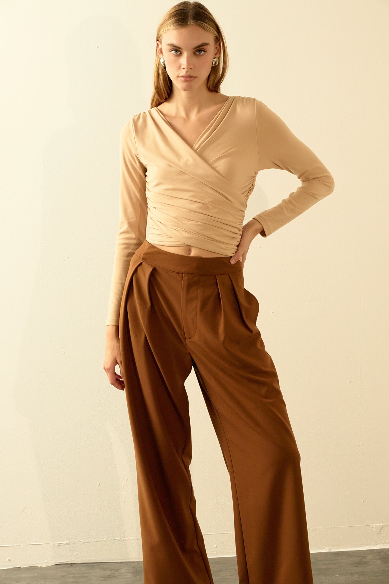 Bring effortless elegance to your wardrobe with this chic long sleeve top. Designed with delicate shirring, it adds soft texture and dimension while gently accentuating your curves for a flattering, feminine silhouette. Perfect for both day and night, this versatile piece can be dressed up with tailored trousers or styled casually with your favorite jeans. A timeless essential with a modern twist, it’s a must-have for any well-curated wardrobe.