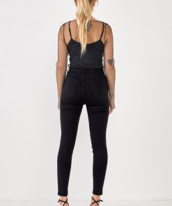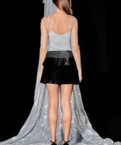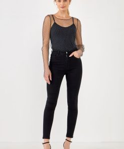 This beautiful top is made from a crystal-embellished mesh fabric. It comes with an ultra-soft and stretchy cami that has adjustable straps to make sure it fits you like a glove. This style is like getting two tops in one because you can wear the cami by itself with a comfortable lounge outfit. If you want, you can wear the mesh top over a lace bodysuit to give it a different look.