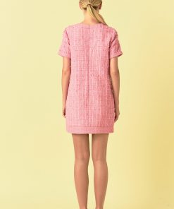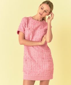 Elevate your style with our Buttoned Tweed Shift Dress. Crafted from high-quality tweed fabric this dress offers luxurious texture and a classic look. The shift dress silhouette is a timeless choice while the mini length adds a modern touch. The round neckline complements the structured design making it a versatile piece for any occasion. Whether you’re heading to the office or a special event this dress is sure to turn heads. Don’t miss out on this must-have addition to your wardrobe. Shop now and stand out in style!