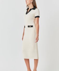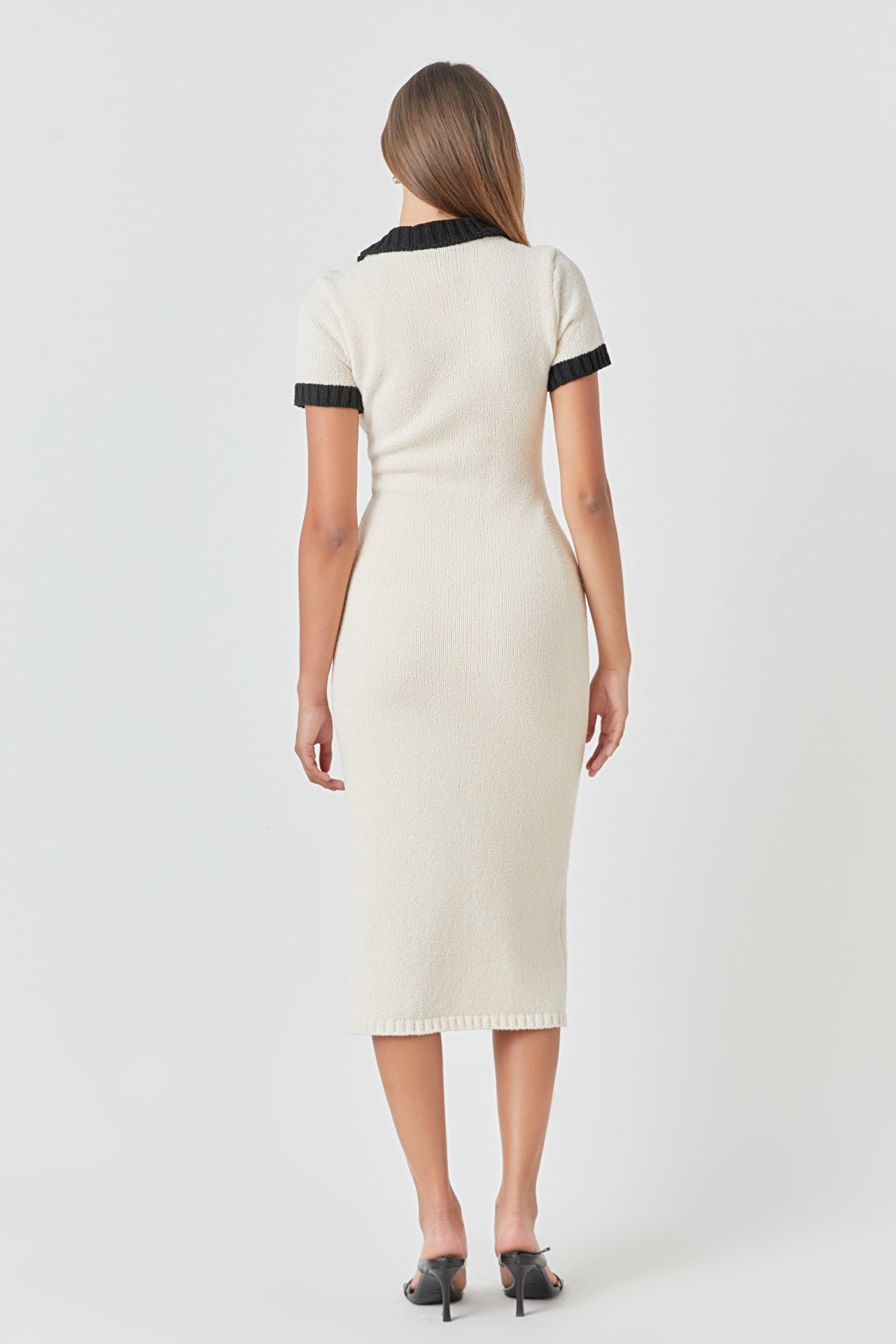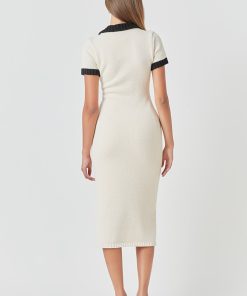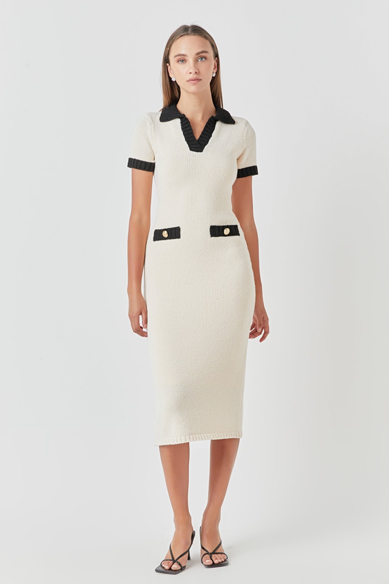 Set the trend in this must-have Crochet Knit Collared Maxi Dress. Made from a chic crochet knit fabric this dress is a standout piece that will have all eyes on you. The fitted silhouette accentuates your curves in all the right places while the maxi length adds a touch of elegance. The classic collar adds a sophisticated touch making it perfect for any occasion. With its unique design and high-quality construction this dress is sure to turn heads. Add it to your wardrobe and step out in style. Perfect for weddings parties and more. Shop now and be the talk of the town.