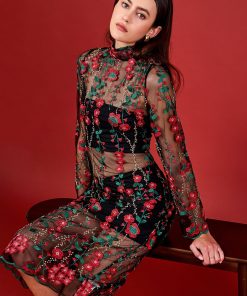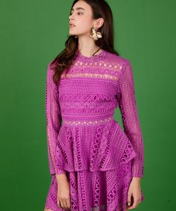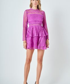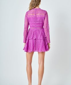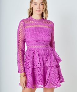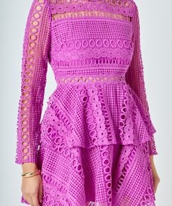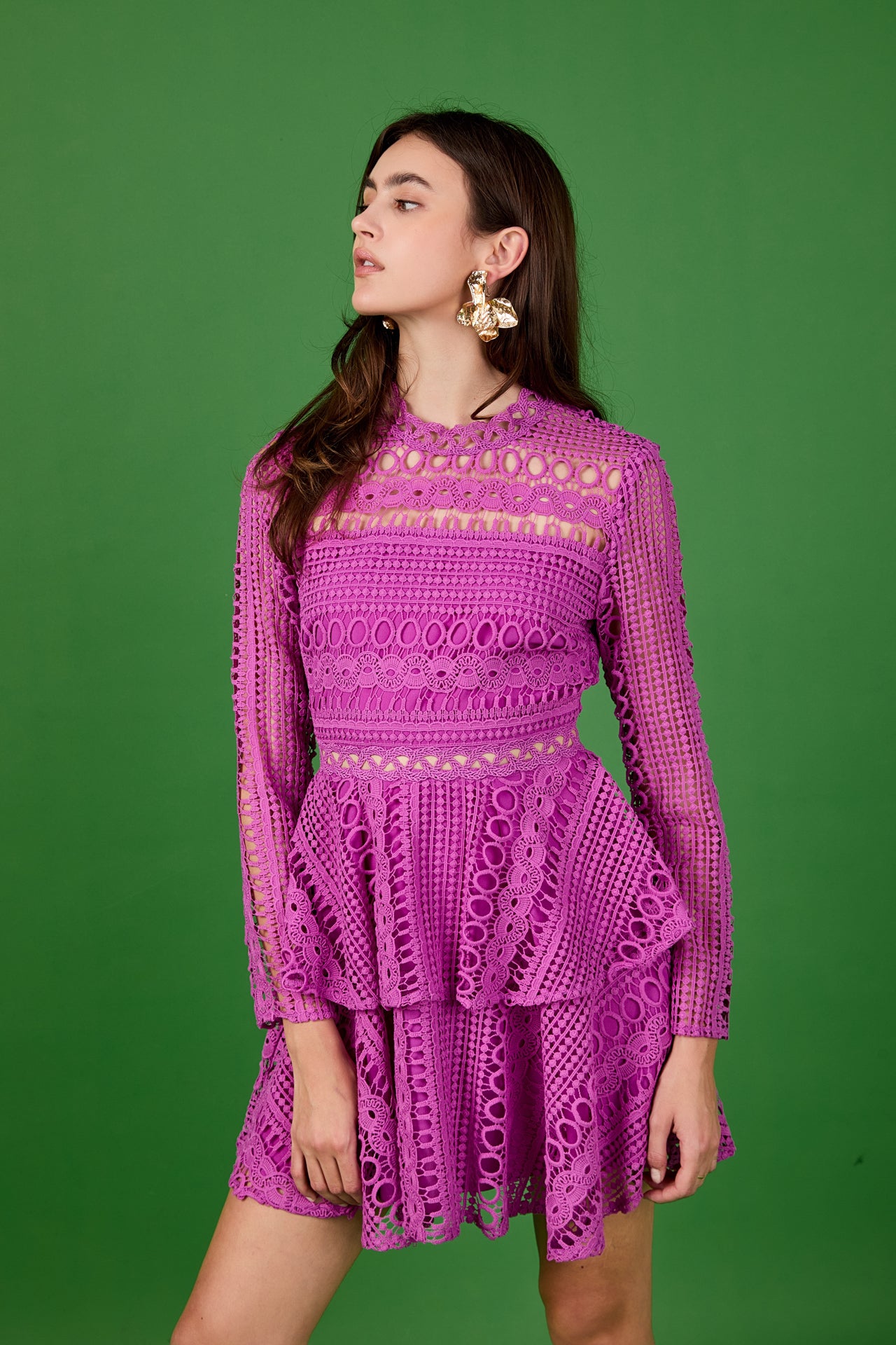 All eyes will be on you in this stunning crochet lace mini dress. This bodycon design hugs your curves for a flattering fit. The long sleeve style and zipper detail make it perfect for any evening event. Be the belle of the ball in this show-stopping dress.