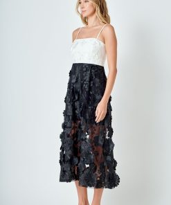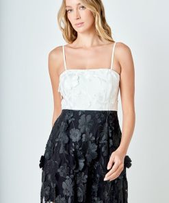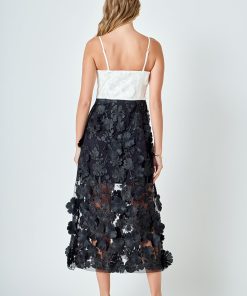 Endless Rose Women’s Dresses Floral Colorblock Applique Midi Dress | White & Black