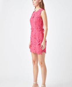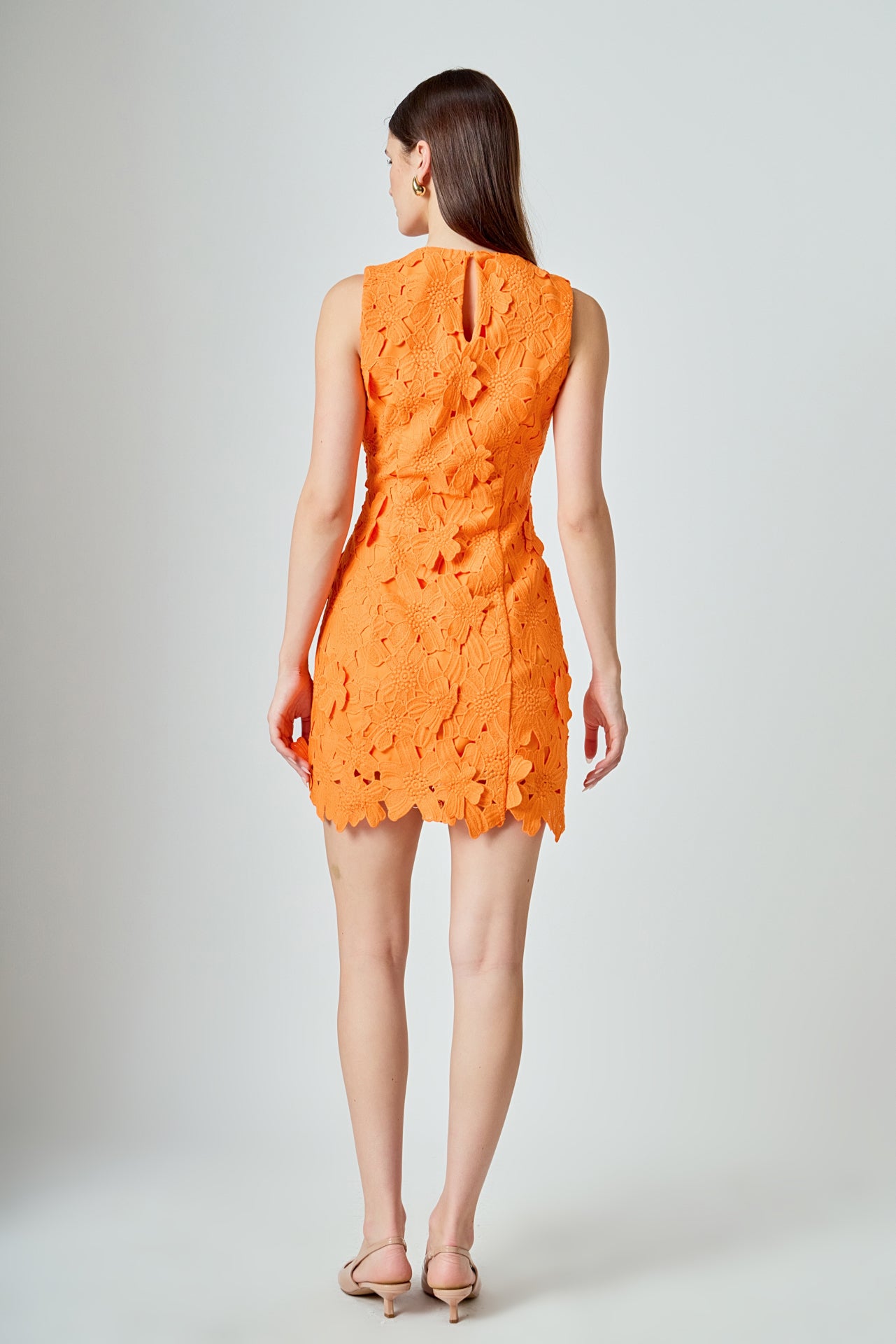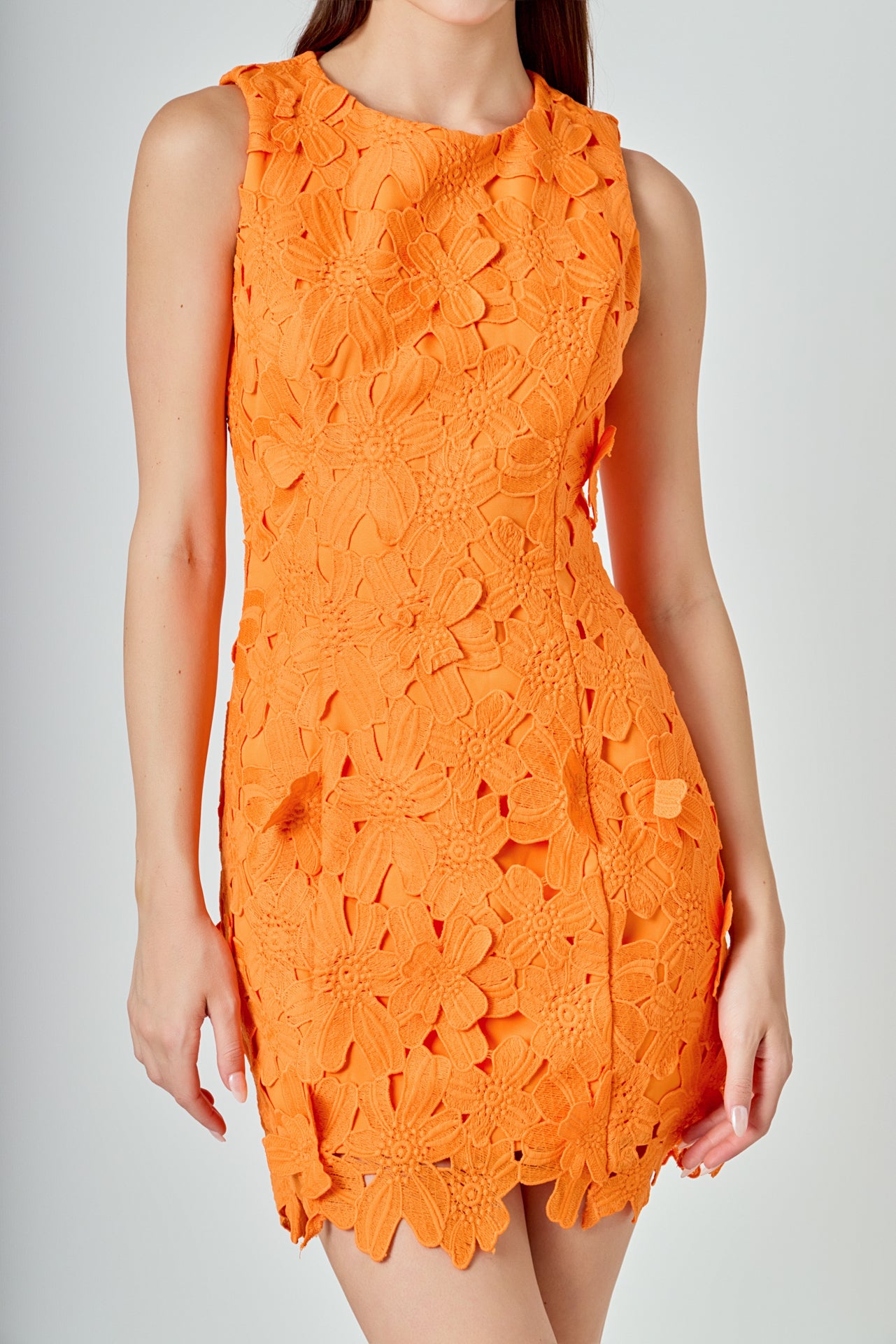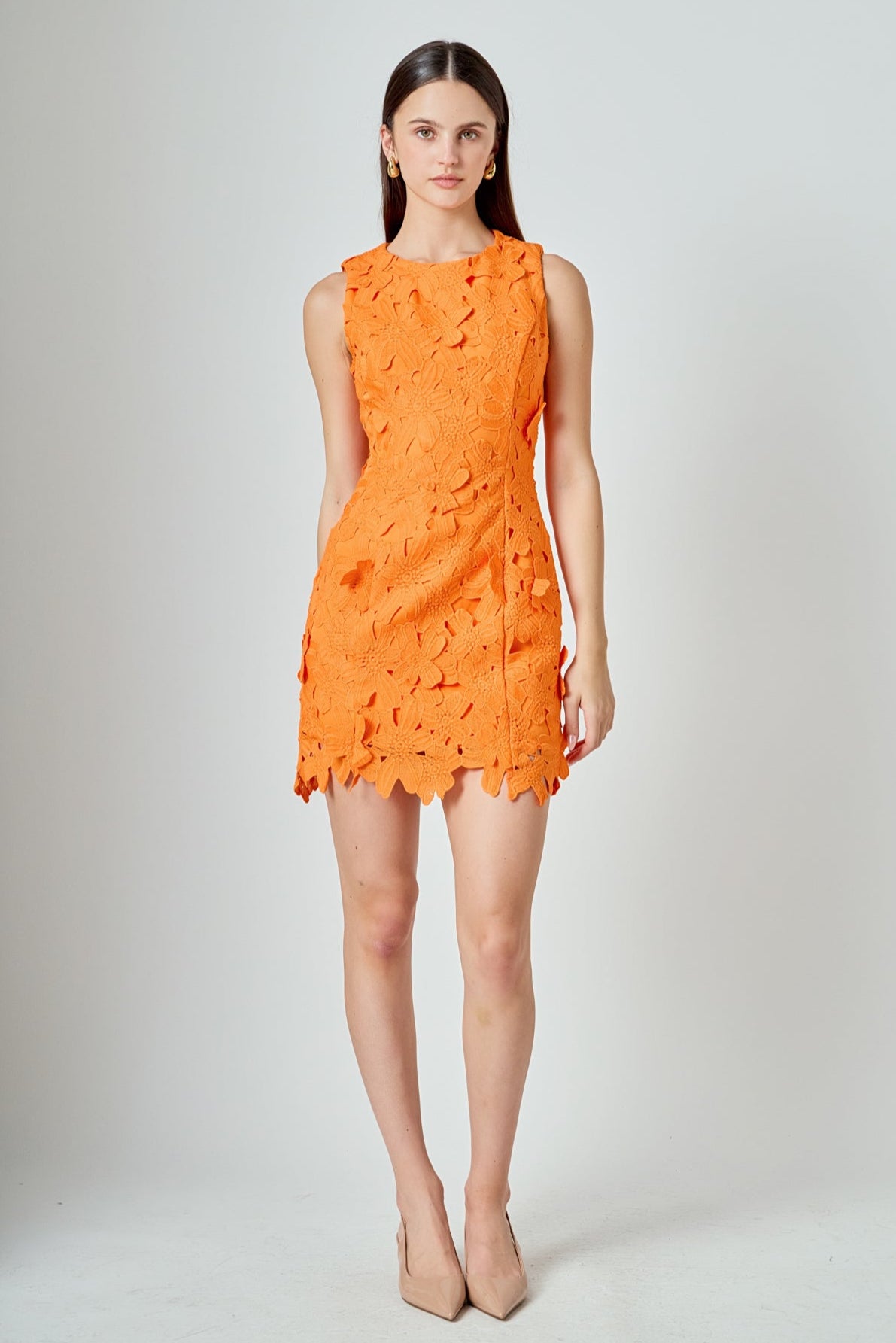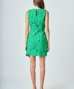 Step out in style with this beautiful mini dress. This fitted mini length dress is made of soft lace fabric and features a round neckline and delicate floral detail. Perfect for any event this dress is finished off with an embroidered detail that is sure to make you stand out. Make a bold fashion statement in this timeless piece and feel ready to take on any occasion!
