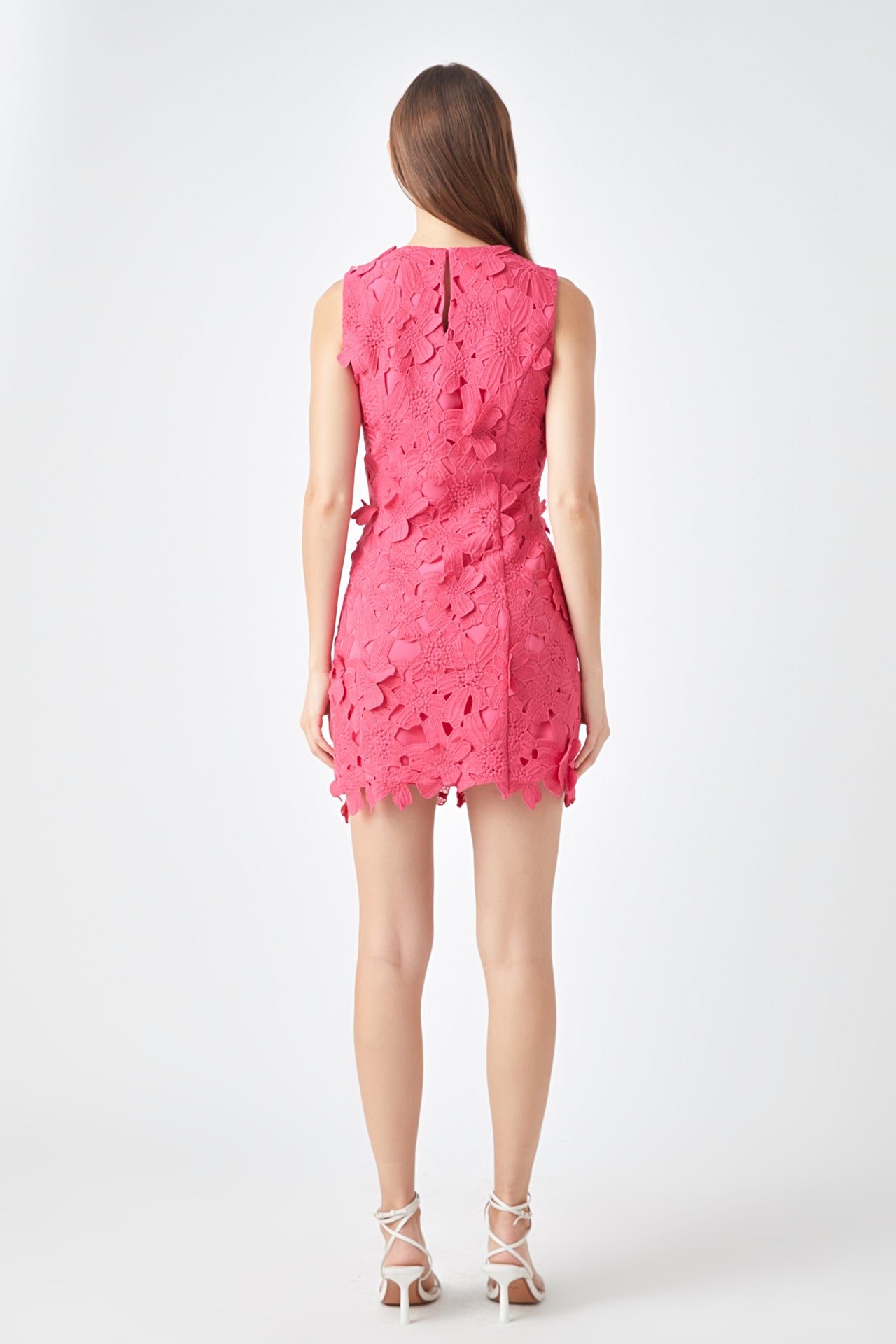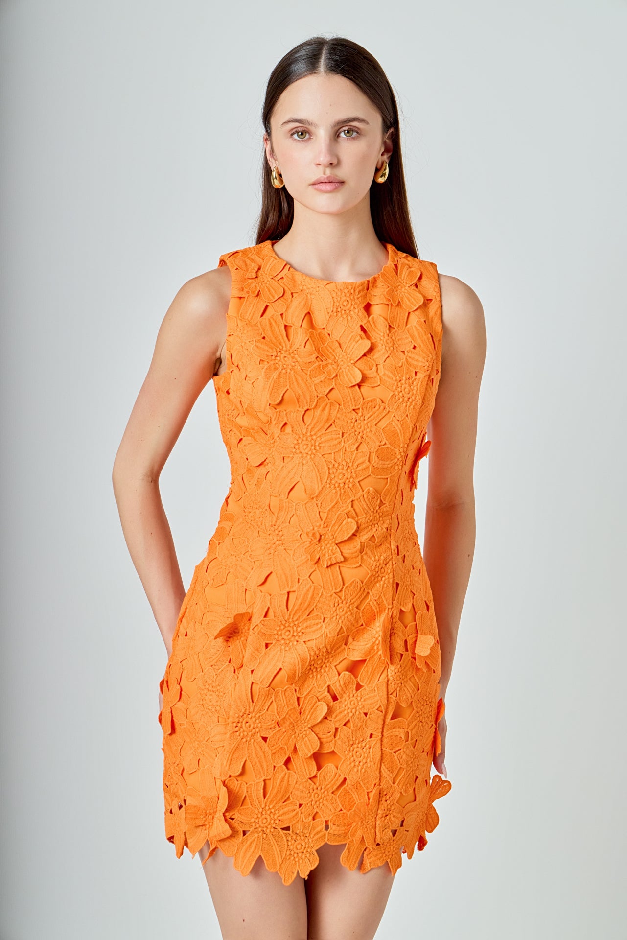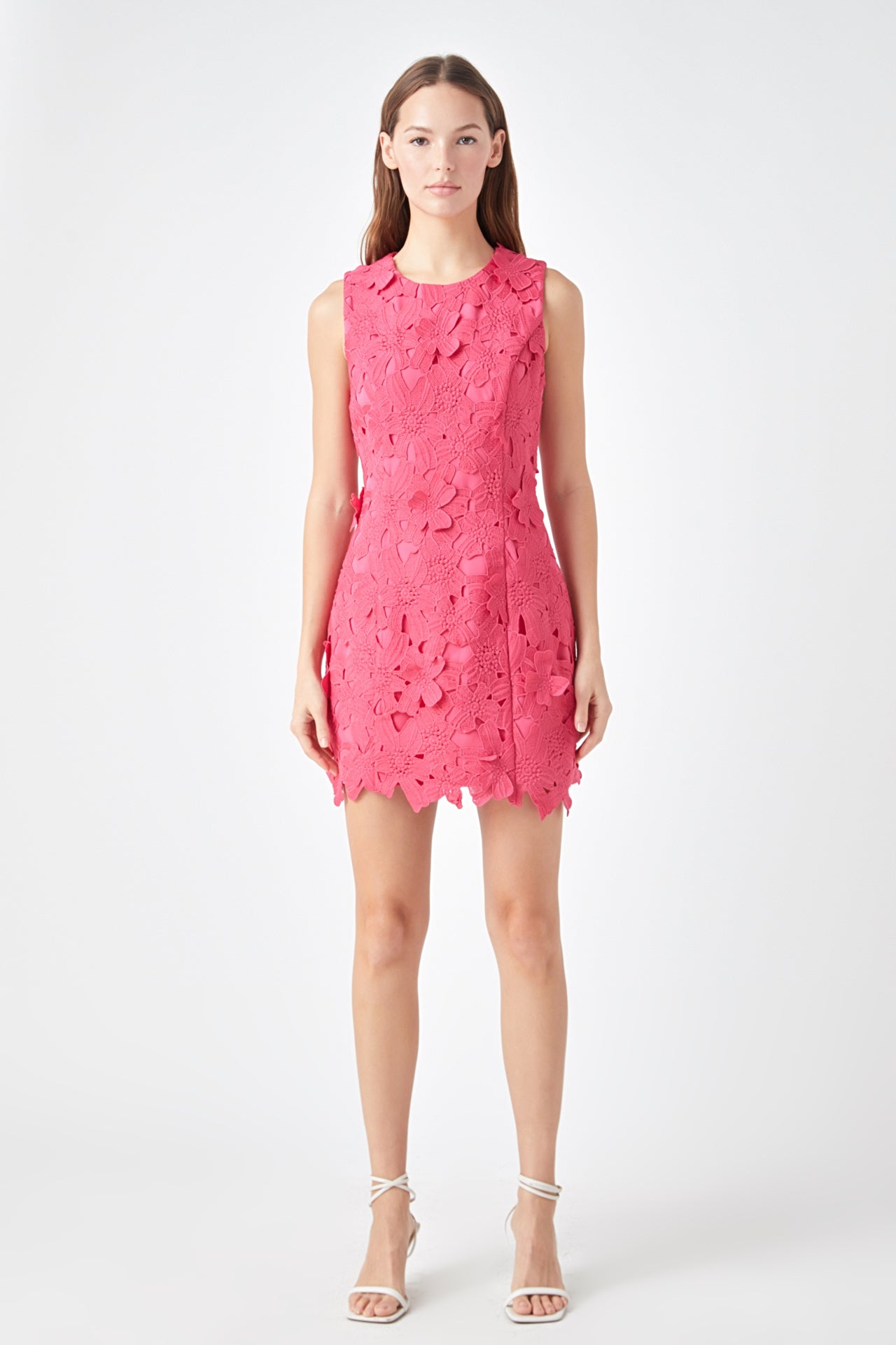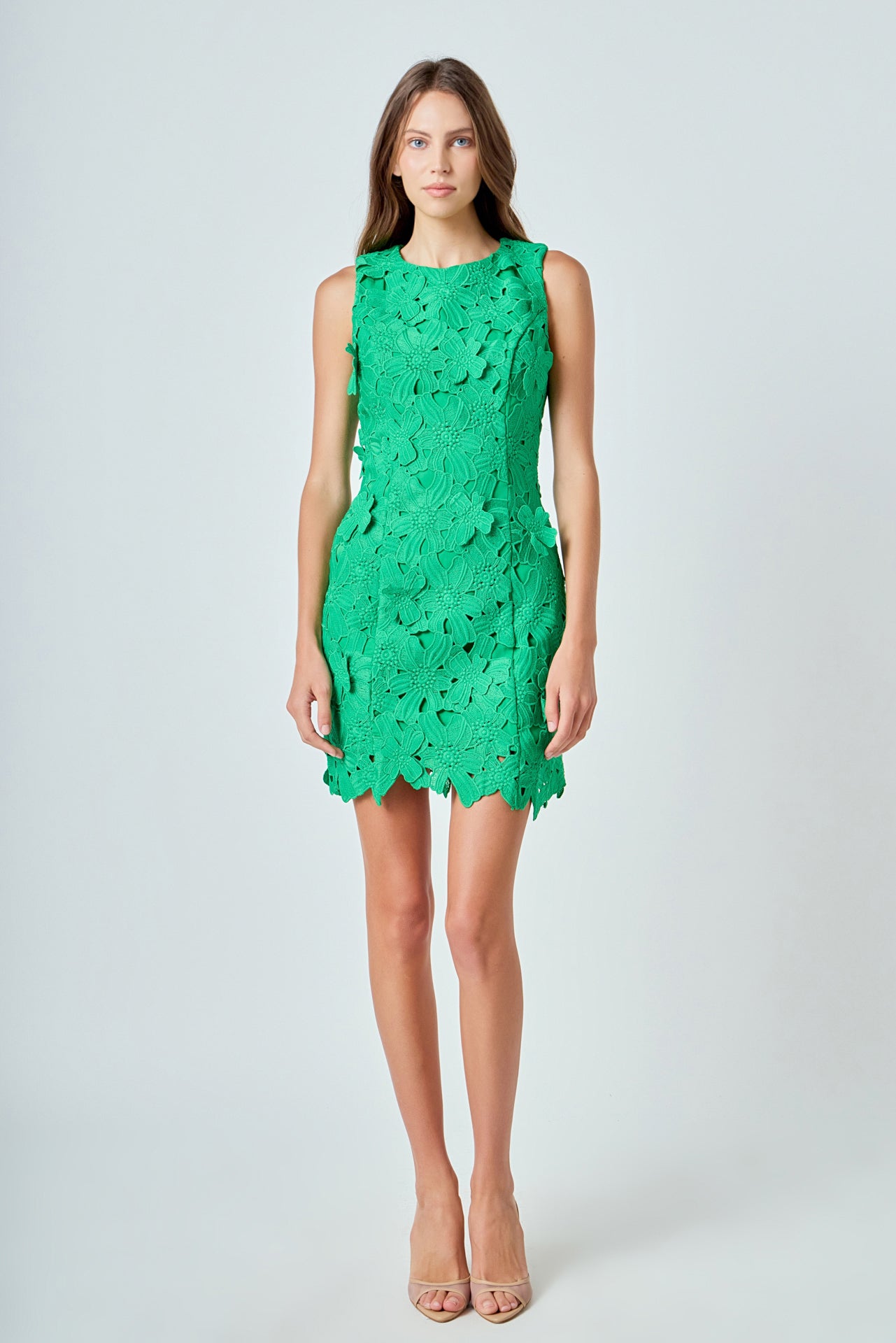 Step out in style with this beautiful mini dress. This fitted mini length dress is made of soft lace fabric and features a round neckline and delicate floral detail. Perfect for any event this dress is finished off with an embroidered detail that is sure to make you stand out. Make a bold fashion statement in this timeless piece and feel ready to take on any occasion!