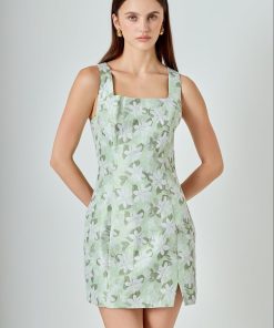 Introducing the ultimate statement piece – our Floral Jacquard Front Slit Mini Dress. Designed with a classic square neckline and sleeveless silhouette, this dress is a must-have for any fashionista. The stunning floral jacquard pattern adds a touch of elegance, while the front slit creates movement and adds a flirty touch. Perfect for any occasion, this dress will have all eyes on you. Don’t miss out on this versatile and trendy piece. Shop now and elevate your wardrobe with our Floral Jacquard Front Slit Mini Dress.