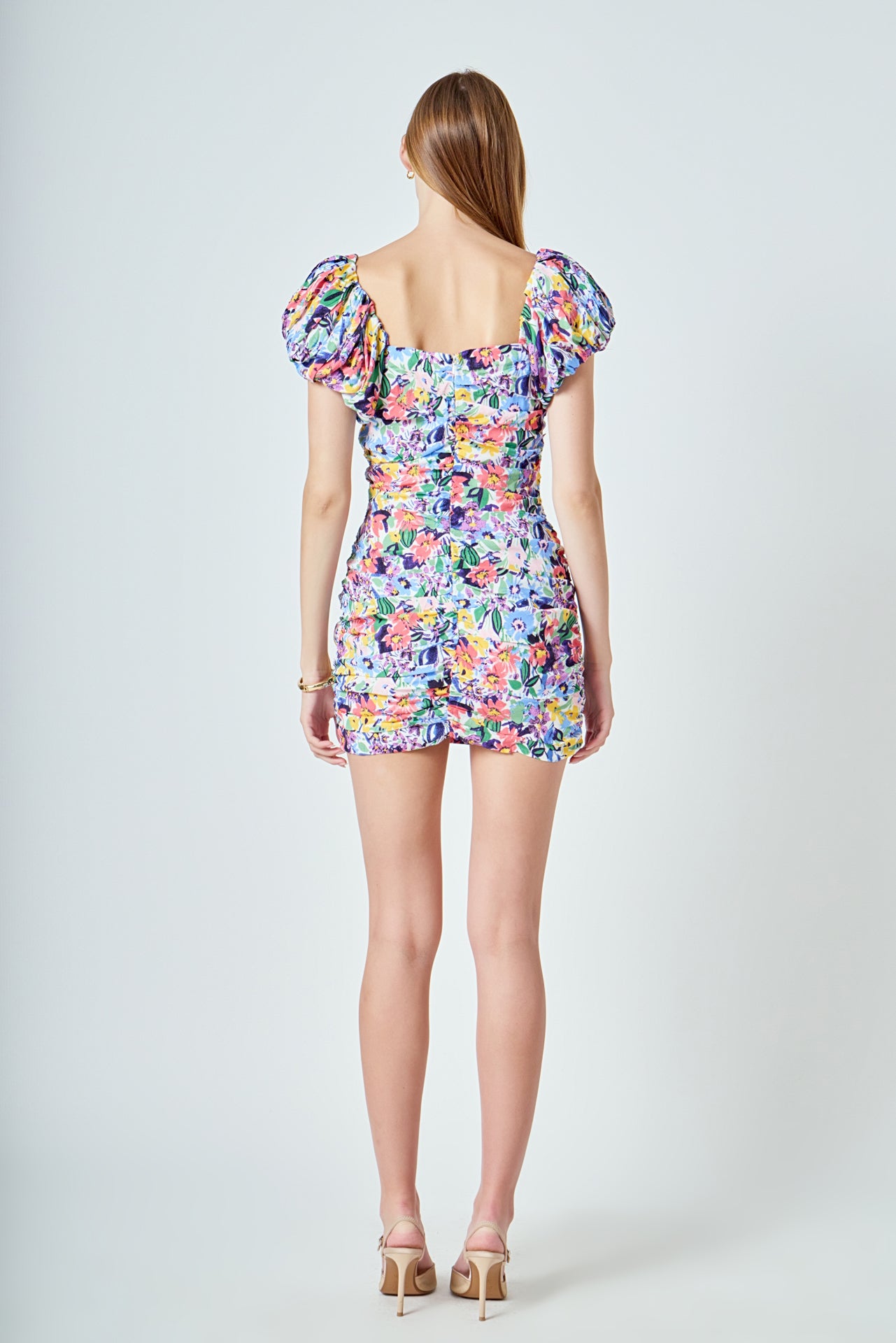 Turn heads in this flirty mini dress. With a pleated bust and ruched bodice, this dress is a show-stopper. The short puff sleeves are functional off the shoulder for a cool and relaxed look. The lining ensures you’ll feel comfortable all night long. This figure-hugging mini is perfect for any formal occasion, from weddings to galas.