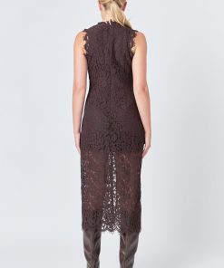 Unleash your feminine charm with our Front Slit Sleeveless Lace Maxi Dress. Featuring delicate lace details and a flattering sleeveless design, this dress is designed to make you feel beautiful and confident. The maxi length adds a touch of elegance, while the inner cami lining ensures comfort and coverage. Perfect for any special occasion or a night out, this dress is a must-have in every woman’s wardrobe. Don’t miss out on this gorgeous piece and add it to your collection today!