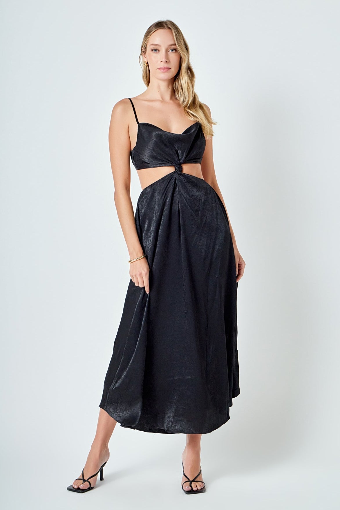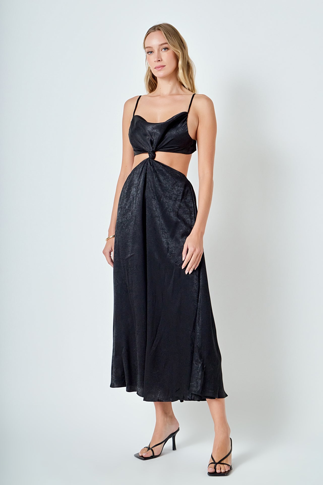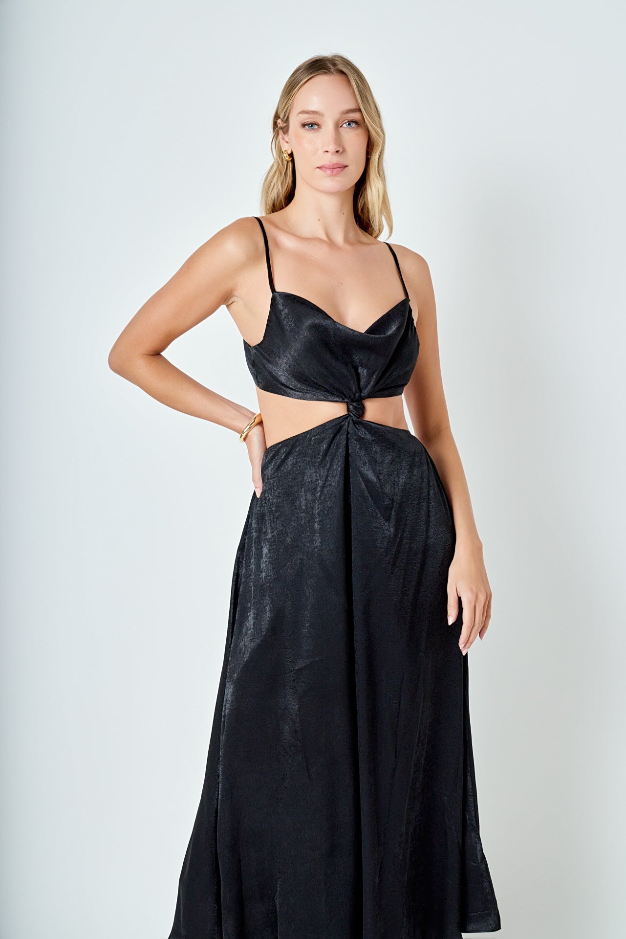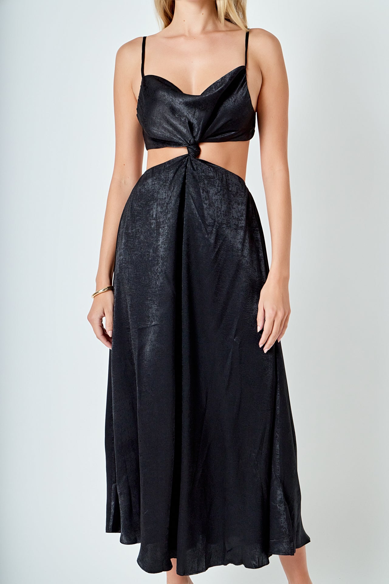 Unleash your inner goddess with our Front Twist Maxi Dress. Its maxi length adds elegance and sophistication while the shoulder strap ensures a comfortable fit. The cowl neck adds a touch of opulence perfect for any special occasion. The front knot detail creates a flattering silhouette making you stand out from the crowd. This dress is perfect for formal events weddings or even date nights. Embrace your feminine side and turn heads in this must-have dress. Shop now for the perfect statement piece.