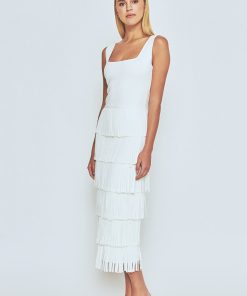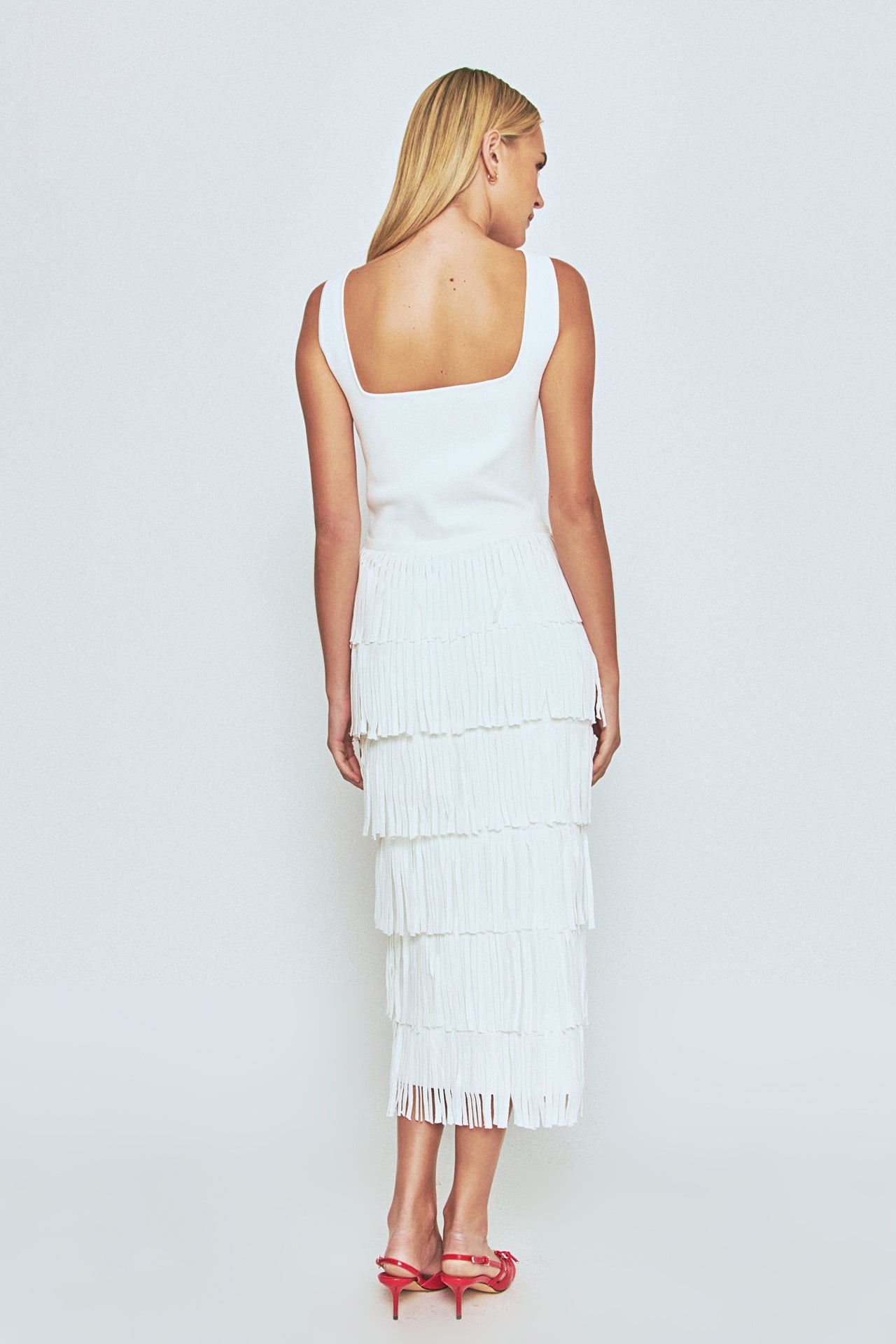 This beautiful Knit Fringe Long Dress is perfect for a special occasion. In a figure-flattering knit fabric, it features a Square neckline, a Tiered fringe skirt, and a Concealed side zipper. This girlie dress stands out with its unique look, so you will be sure to get noticed. The added fringe is the perfect detail to make the dress extra special. Shop now, and you’ll be ready for any event.