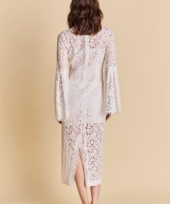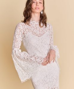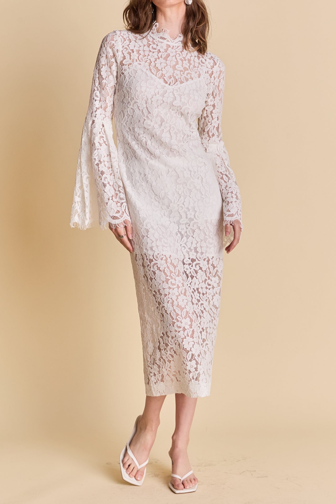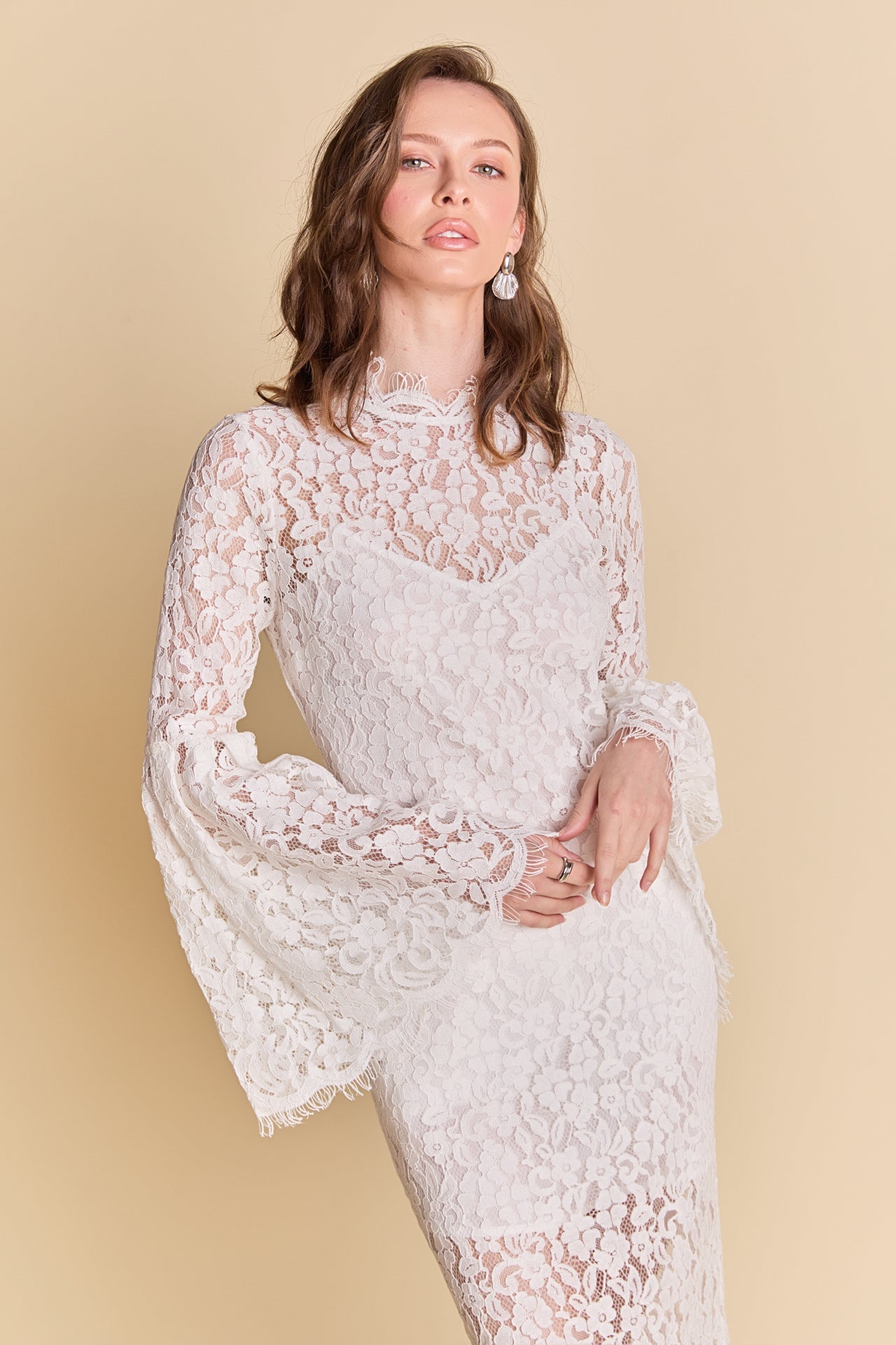 Introducing our stunning Lace Column Midi Dress, the perfect choice for any special occasion. This dress boasts intricate lace detailing, giving a touch of elegance to the midi length design. Fitted with a back zipper for effortless wear and a back slit for added movement. The classic column silhouette flatters every figure, making it a must-have for your wardrobe. Ideal for weddings, parties, or formal events, this dress is sure to turn heads.