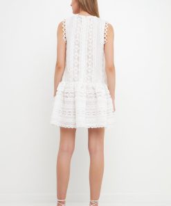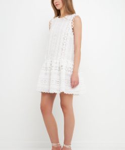 This lovely Lace Trim Detail Mini Dress is your new go-to garment. Its comfy flowy fabric is highlighted by a beautiful lace trim providing a unique detail. Pair this dress with some flats and you’ll be ready for a day in the sun. Its sleeveless design is great for a hot summer day and the smocked details complete the look. Buy this mini dress to add a unique and stylish item to your wardrobe that will get you the compliments you deserve.
