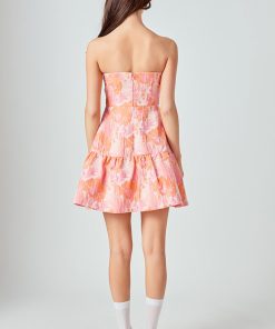 Endless Rose Women’s Dresses Lindsey Floral Jacquard Strapless Blouson Mini Dress | Pink & Orange