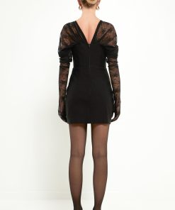 Chicness has arrived. This jaw-dropping mini dress features lace glove sleeves that make a sultry statement. Plus, you can choose to wear it in an on-shoulder or off-shoulder style. This mini dress has boning in the top, creating a flattering silhouette to show off your curves. Pair this gorgeous mini dress with tights and pumps for a party-ready look.