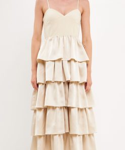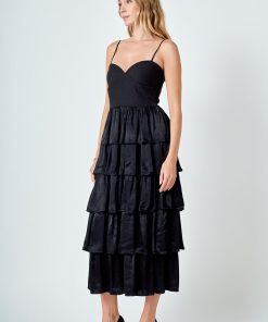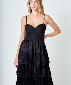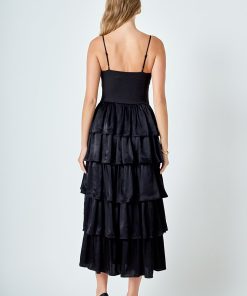 Endless Rose Women’s Dresses Mixed Media Maxi Dress | Black|taupe
