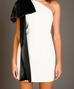 Get ready to turn heads in our One Shoulder Bow Tie Mini Dress. This versatile dress features a flattering one shoulder design and a chic bow tie detail on the shoulder. Made with a comfortable and lightweight fabric it’s perfect for any occasion. The mini length adds a flirty touch while the side zipper ensures a secure fit. From dinner dates to girls’ night out this dress is sure to make a statement. Step out in style and shop now. Don’t miss out on this must-have dress!