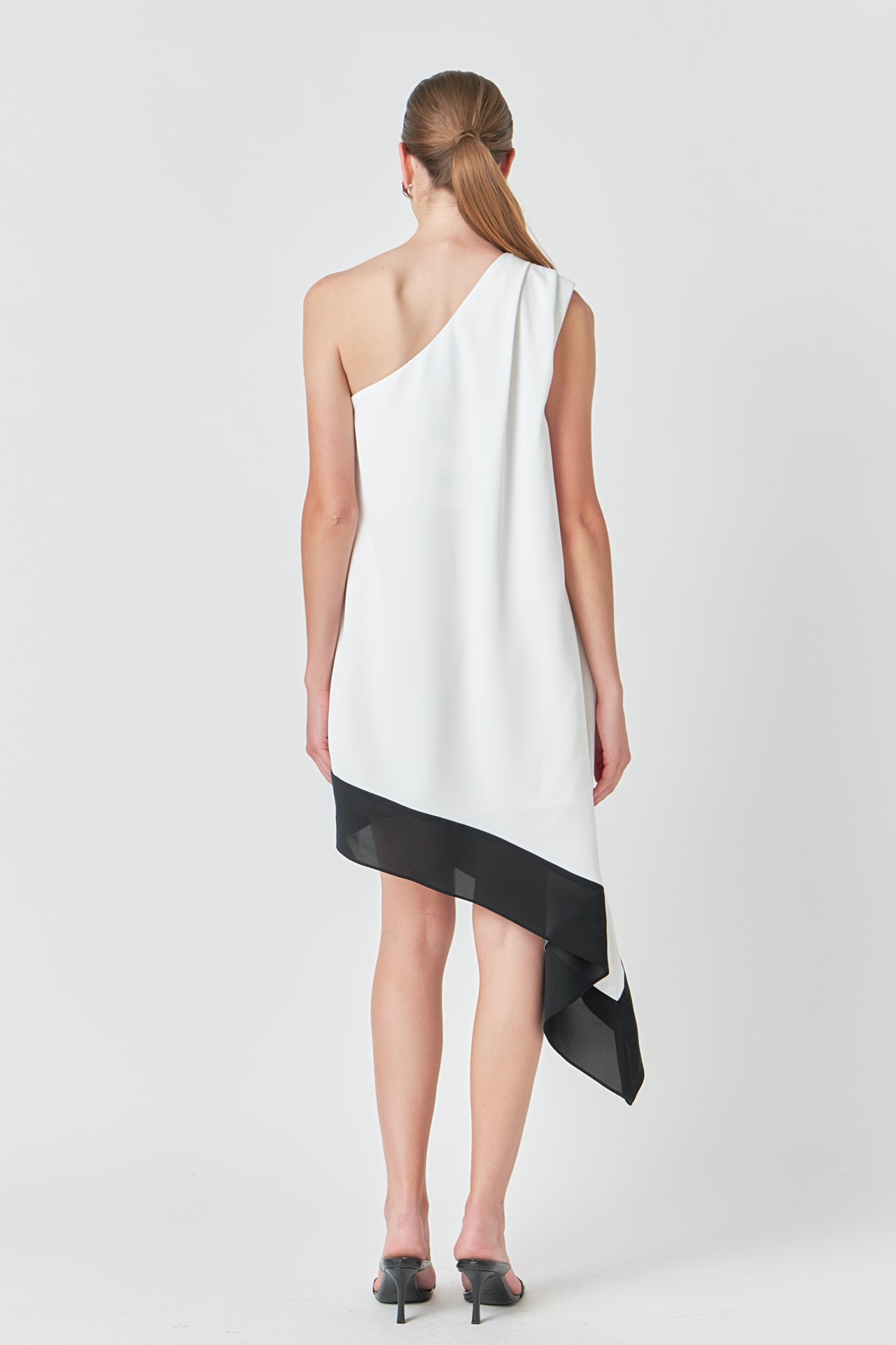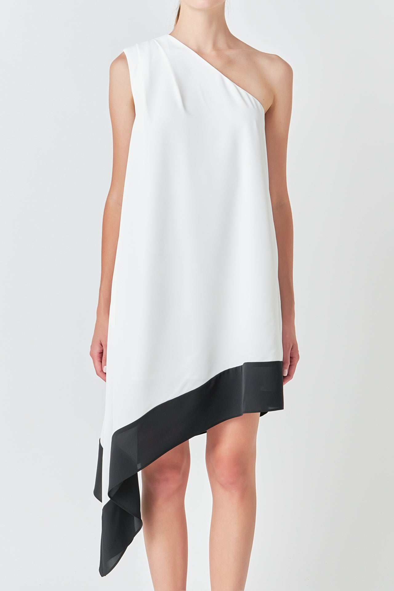 Endless Rose Women’s Dresses One Shoulder Colorblock Dress | Cream & Black