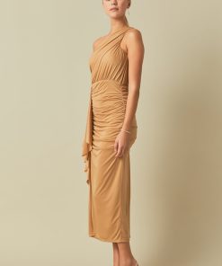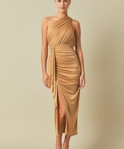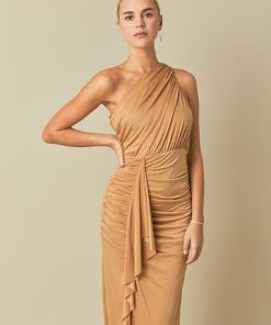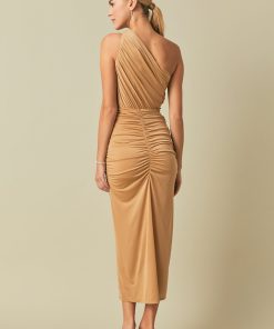 This gorgeous one shoulder maxi dress is sure to turn heads. Crafted from a lightweight fabrication with a figure-flattering ruching design this stunning maxi dress has an asymmetrical neckline with an alluring one shoulder silhouette. The side zipper closure ensures easy wearability when you need a graceful look that still feels comfortable. The unique style of this fabulous maxi dress is sure to make a statement while the maxi length delivers a touch of elegant sophistication.