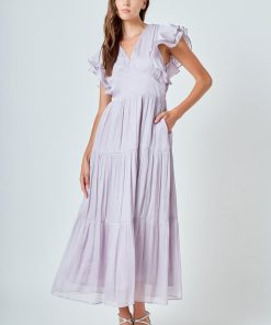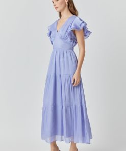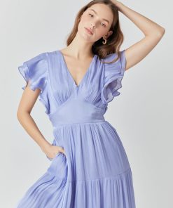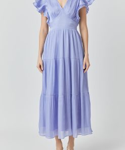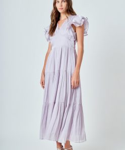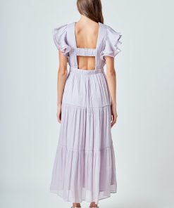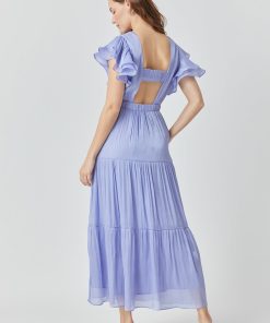 This Open-Back Maxi-Dress has an elegant v-neck and playful ruffled sleeves. Crafted from luxurious sheen crinkle fabric it’s designed to make a lasting impression. The maxi length is perfect for any occasion from an outdoor lunch to a romantic evening. An open back adds a bit of drama. Look your best with this gorgeous dress and show off your unique sense of style!