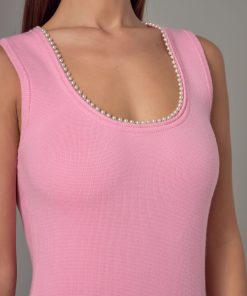 Elevate your wardrobe with our stunning Pearl Trim Knit Midi Dress. With a timeless midi length and flattering low neck drop, this dress is perfect for any occasion. The round neckline adds a touch of sophistication, while the delicate pearl trim adds a touch of elegance. Made from high-quality knit material, it offers a comfortable and stylish fit. Whether you’re heading to a formal event or a casual outing, this dress will surely turn heads. Don’t forget to accessorize with statement jewelry for a complete look. Shop now and add a touch of glam to your wardrobe.