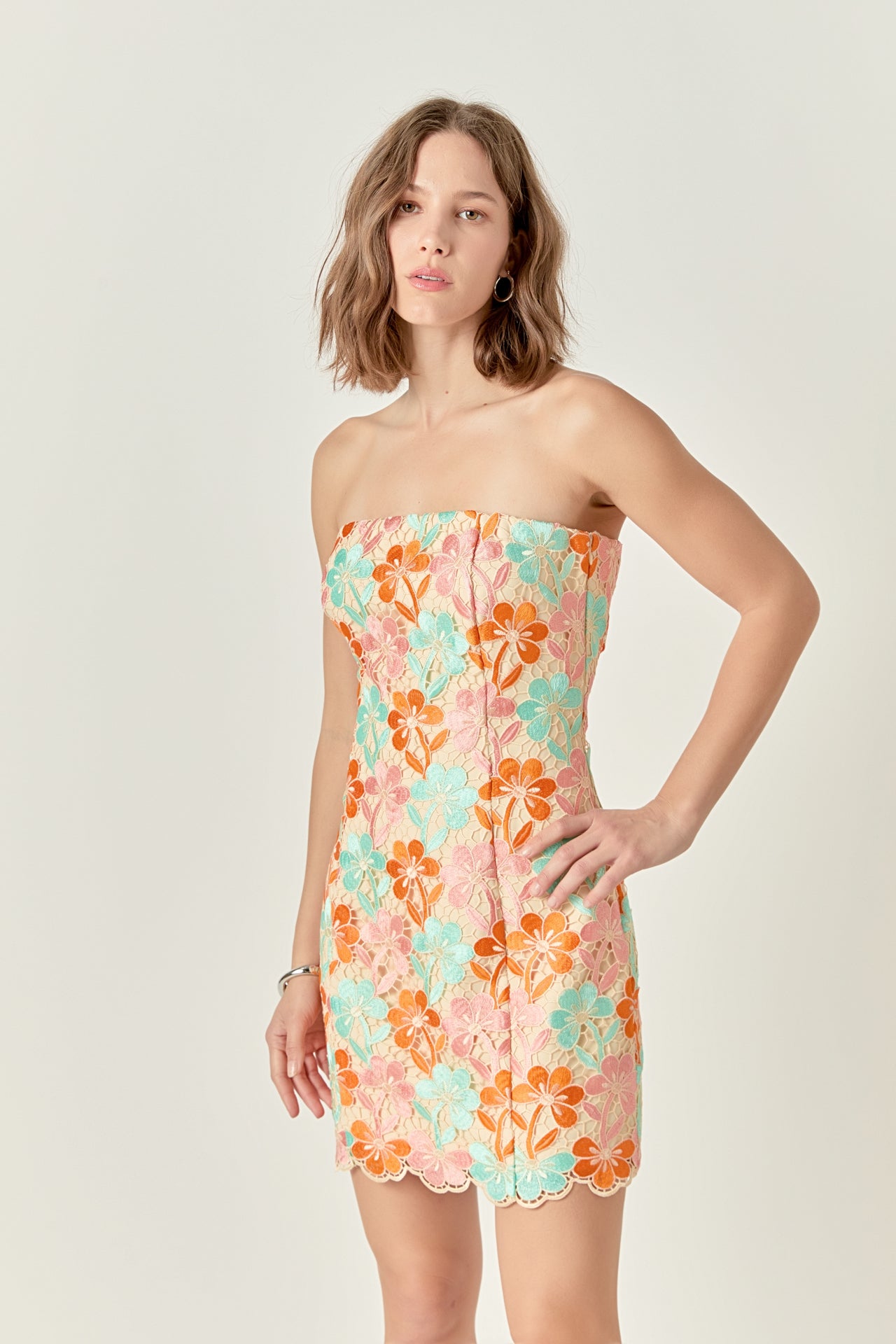 Add a touch of elegance to your wardrobe with our Rhinestone Lace Dress. The intricate rhinestone lace detailing adds just the right amount of sparkle to your look. The strapless design beautifully accentuates your shoulders while the fitted silhouette hugs your curves in all the right places. Perfect for any special occasion, this mini length dress will have you feeling confident and stylish. With its unique combination of glamour and sexiness, it’s a must-have for any fashion-forward woman. Search no further, this dress is the perfect blend of sophistication and allure.