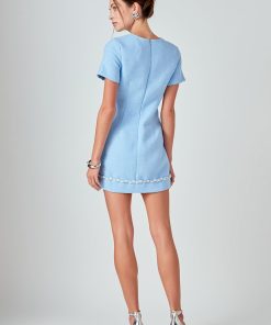 Our timeless classic Romy Chain Embellished Short Sleeve Tweed Mini Dress is one-of-a-kind. It features a chic mix braided trim that adds a bold, edgy twist and jewel buttons that give it a retro flair. Ideal for warmer days, this dress is mini in length and features short sleeves. Pair it with simple jewelry for formal events, or simple ballet flats for a shopping day. Explore our collection for more unique styles!