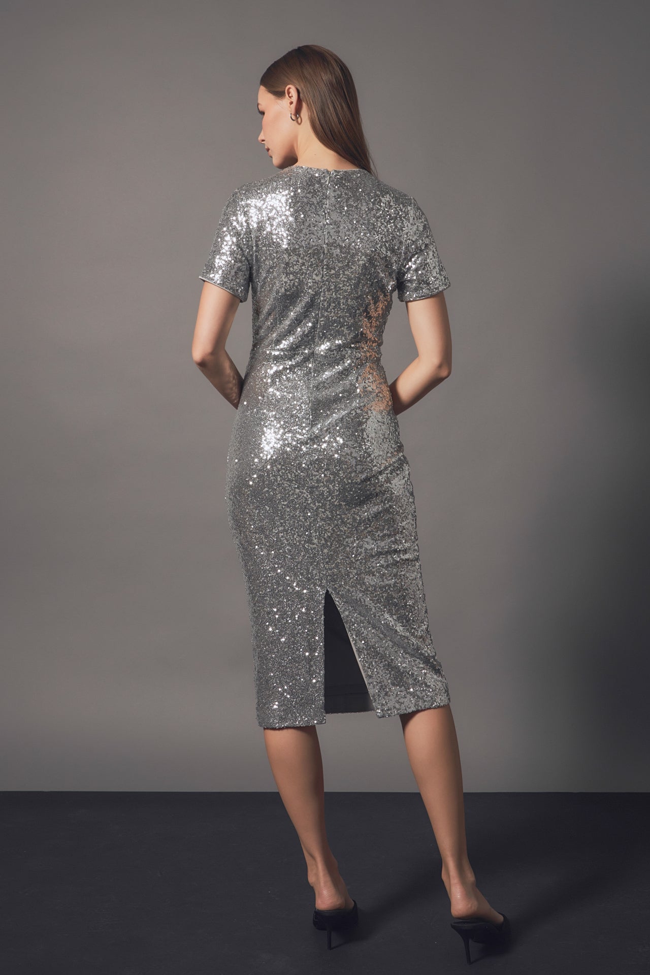 Endless Rose Women’s Dresses Sequins Short Sleeve Maxi Dress | Silver