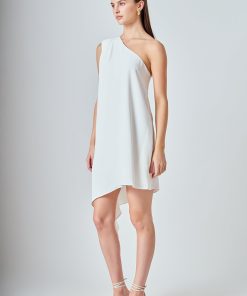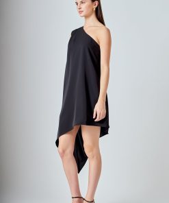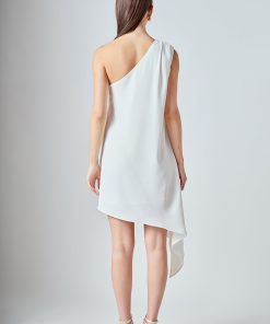 Make a statement in this stylish Shoulder Pintucked Asymmetrical Mini Dress. Its one-shoulder design features an asymmetrical waterfall hemline and shoulder pintuck detail for an eye-catching piece. Dress it up or down for any occasion.