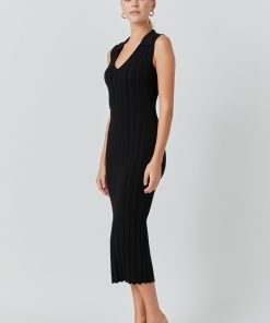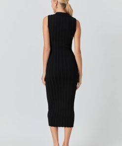 This Sleeveless Rib Knit Maxi Dress is must-have for your wardrobe. It features a V neckline and a maxi length cut made from soft and comfy rib knit fabric. This versatile dress can be dressed up or down to suit your style. The sleeveless design keeps you cool and comfortable while the stylish silhouette flatters all body types. Get ready to turn heads in this fashionable and timeless rib knit maxi dress.