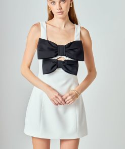 Turn heads and make a statement in our Sophia Bow Cutout Mini Dress. This dress features a stunning bow detail that adds a touch of femininity and charm. The front cutout adds a sultry edge while the fit and flare silhouette flatters any body type. With its mini length, this dress is perfect for showing off your legs. Whether you’re dressing up for a night out or a special occasion, our Sophie Bow Cutout Mini Dress is sure to make you stand out. Perfect for those who love to make a bold fashion statement. Shop now and elevate your style game!