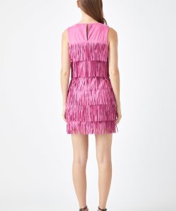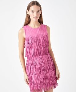 Flirty and fun, this Faux Suede Fringe Sleeveless Mini is perfect for your next night out. The round neckline flatters your face, while the fitted silhouette hugs your curves in all the right places. The back button closure and tiered fringe detail add a touch of drama. Pair with your favorite heels and a leather jacket for a rough-and-tumble look that’ll have heads turning all night long.