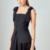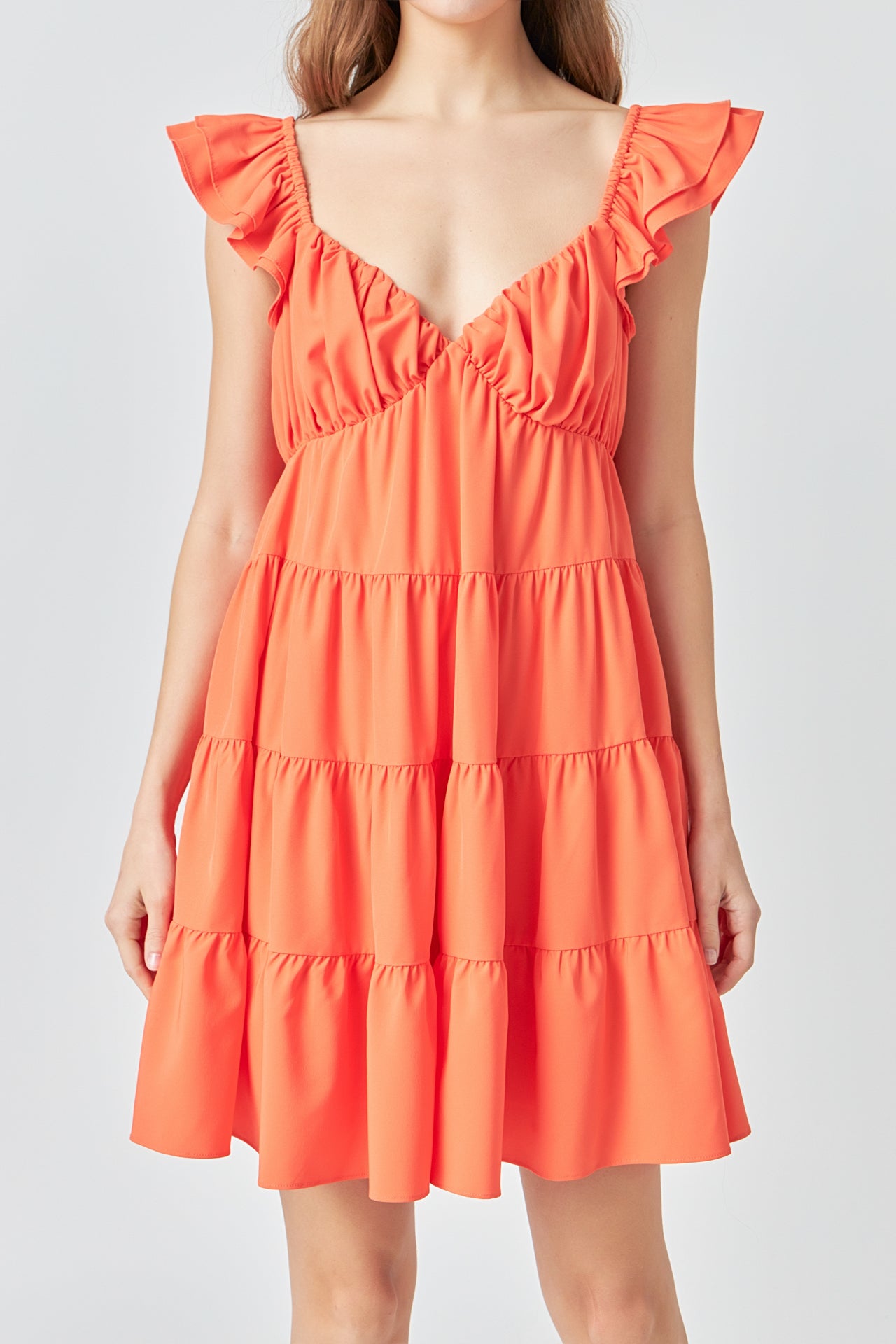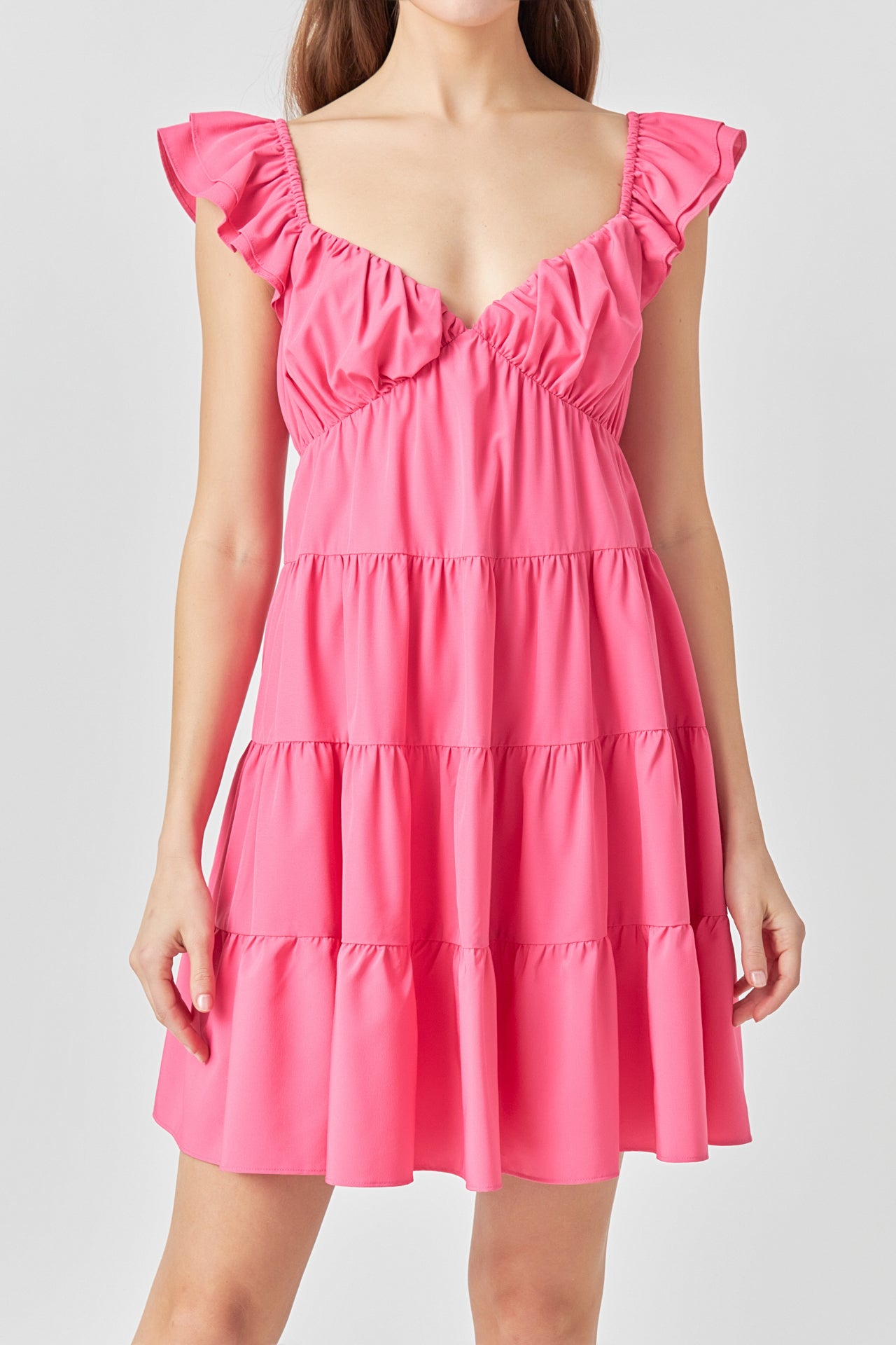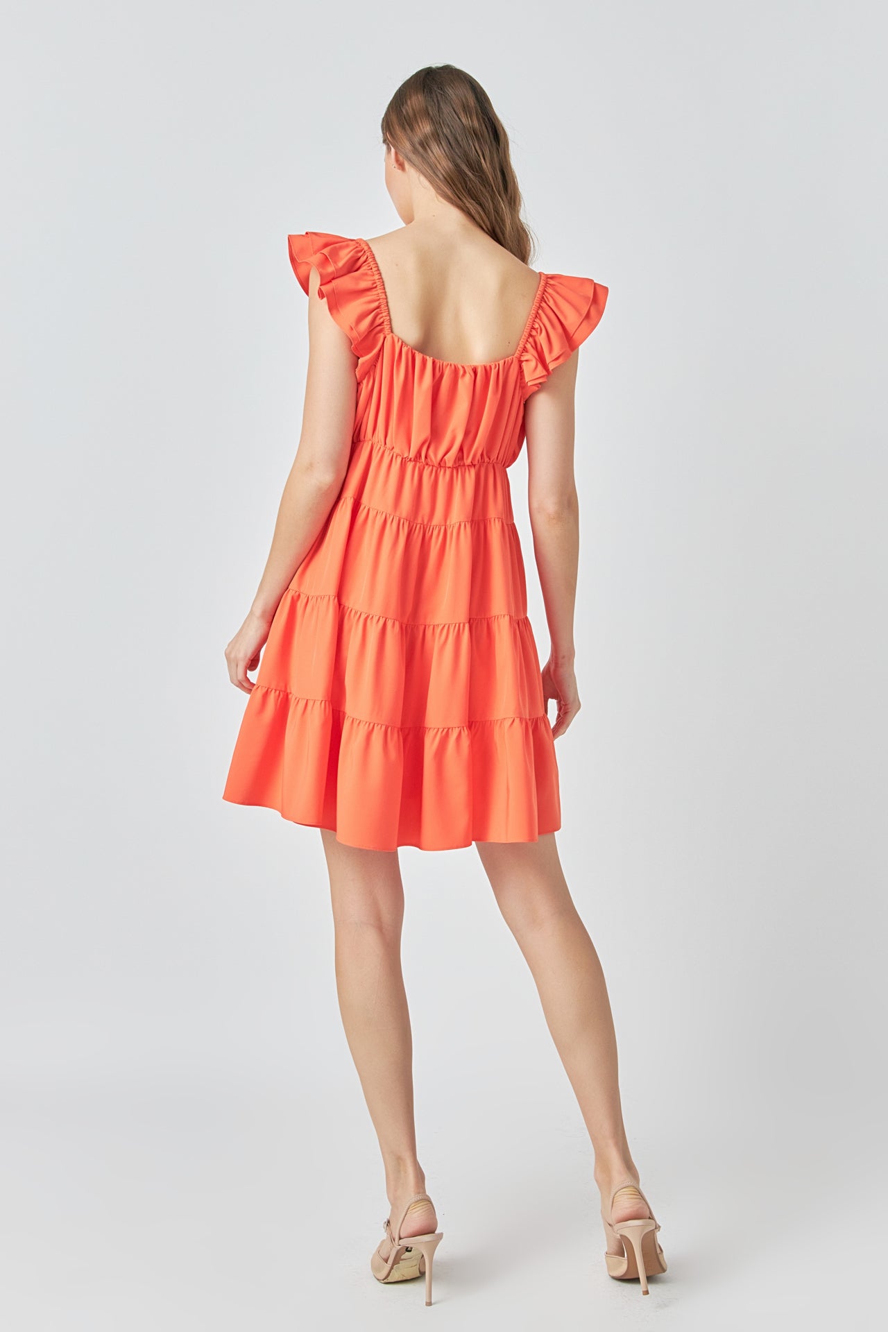 - Layered ruffle cap sleeves