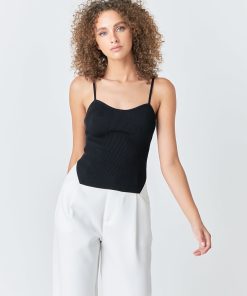 Elevate your style with this must-have cami. With its elevated knit and corset bust, this top is perfect for giving any outfit a touch of luxury. The double slit opening and skinny strap are added touches of style, while the fitted cut ensures you’ll look your best. Whether you’re dressing up or dressing down, this cami is a key piece you’ll want to have in your wardrobe.