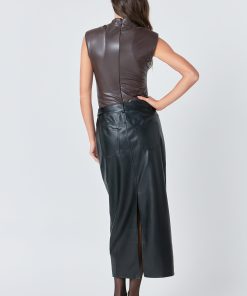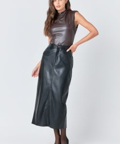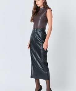 Be sleek and stylish in our Faux Leather Maxi Skirt. Made from durable faux leather this skirt offers a timeless and classic look. It features a high-waisted silhouette a full-length maxi hem and a trendy slit at the center back. Make any look go from drab to fabulous with this versatile and eye-catching skirt. With its sophisticated and timeless design this skirt will become a staple in your closet. Be sure to get yours now!