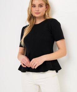 This top is sure to get you lots of compliments. With a flattering flared bottom and pretty round neckline, this top is perfect for any occasion. You’ll love the soft and comfortable knit fabric, too. Dress it up or down – this top can go from the office to a night out with ease.