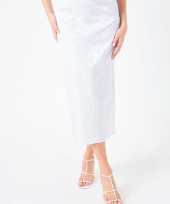 This Floral Jacquard Maxi Skirt is the perfect addition to any wardrobe. Featuring beautiful floral jacquard fabric, a maxi length, straight fit, and waistband, this skirt is both comfortable and stylish. Show off your unique style in this comfortable and versatile piece. With its timeless design, this skirt is ideal for both formal and casual occasions.