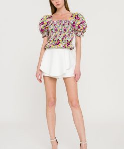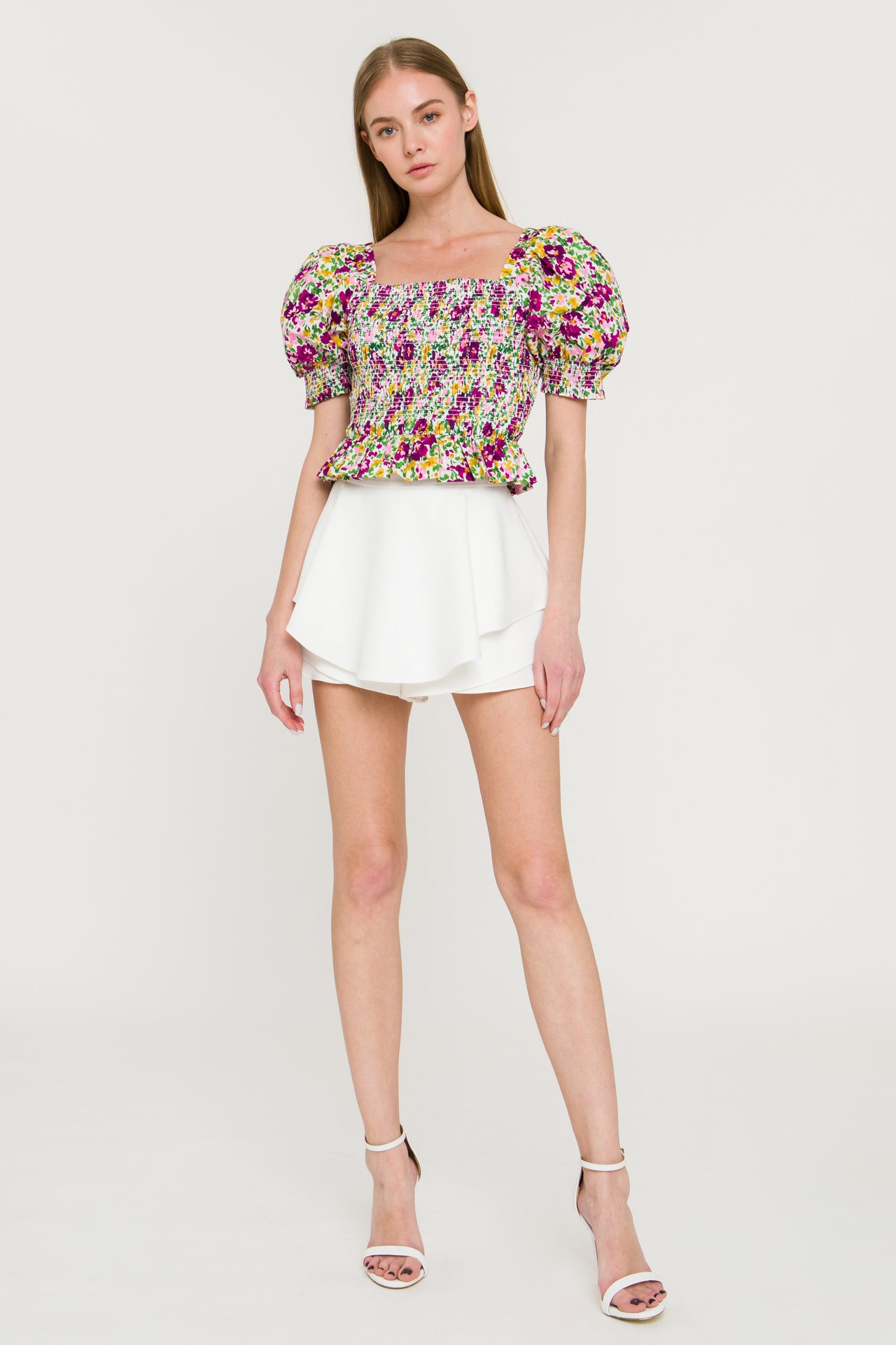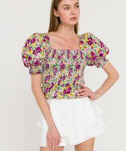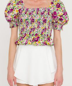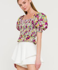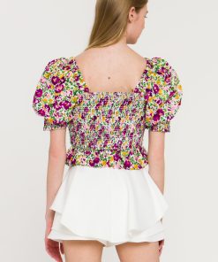 Make a statement with our Floral Smocked Top! Featuring a beautiful flower print that exudes femininity and charm, this top also boasts a flattering square neckline and delicate smocking detail that accentuates your figure. The trendy puff sleeves add a touch of drama and flair to this must-have piece. Perfect for any occasion, from brunch to date night, this top will have you looking and feeling your best. Don’t miss out on adding this versatile and stylish top to your wardrobe!